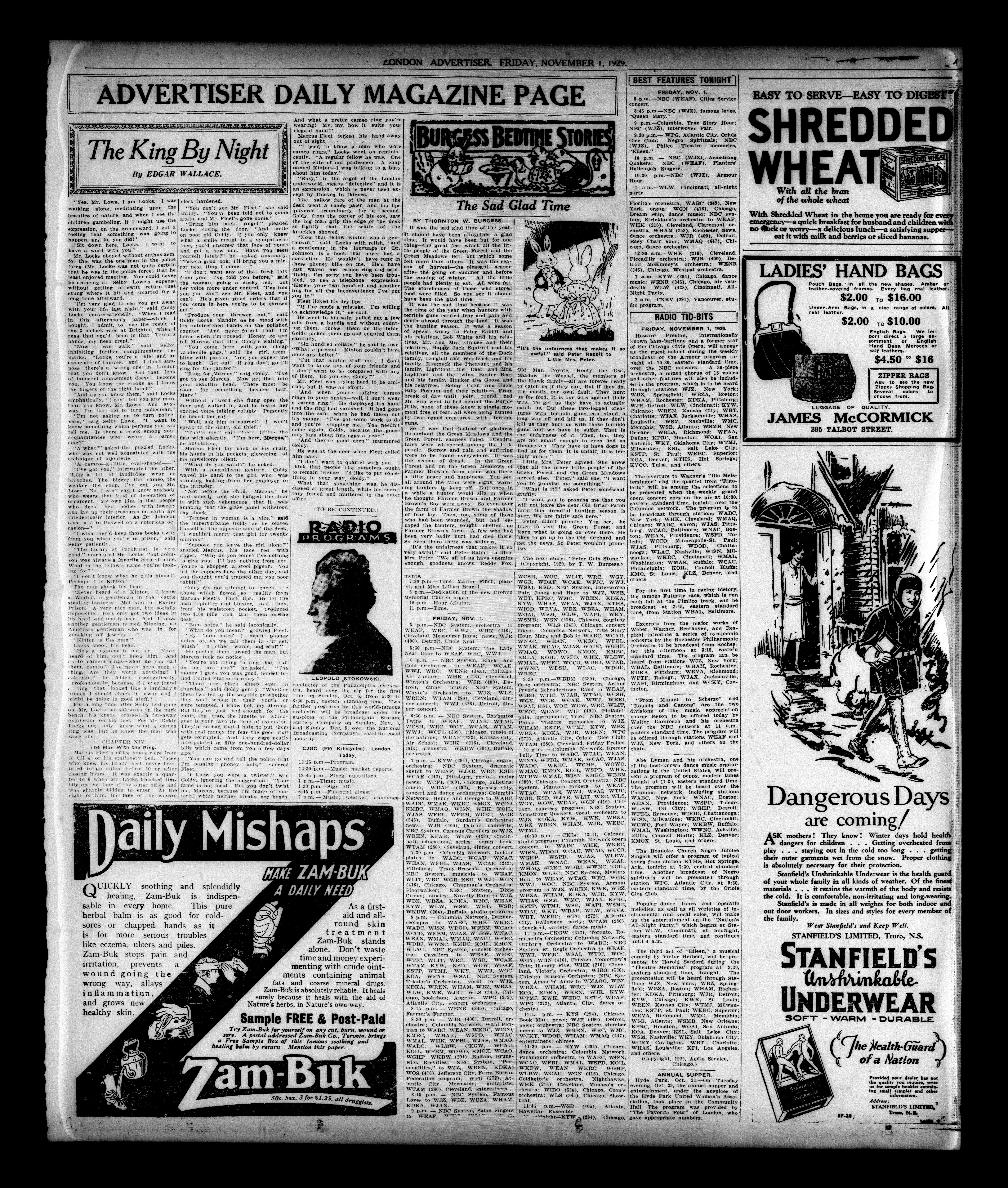 London, Ontario : London Advertiser Company, Limited, [1929]; 20 images, 0 avec recherche en texte intégral