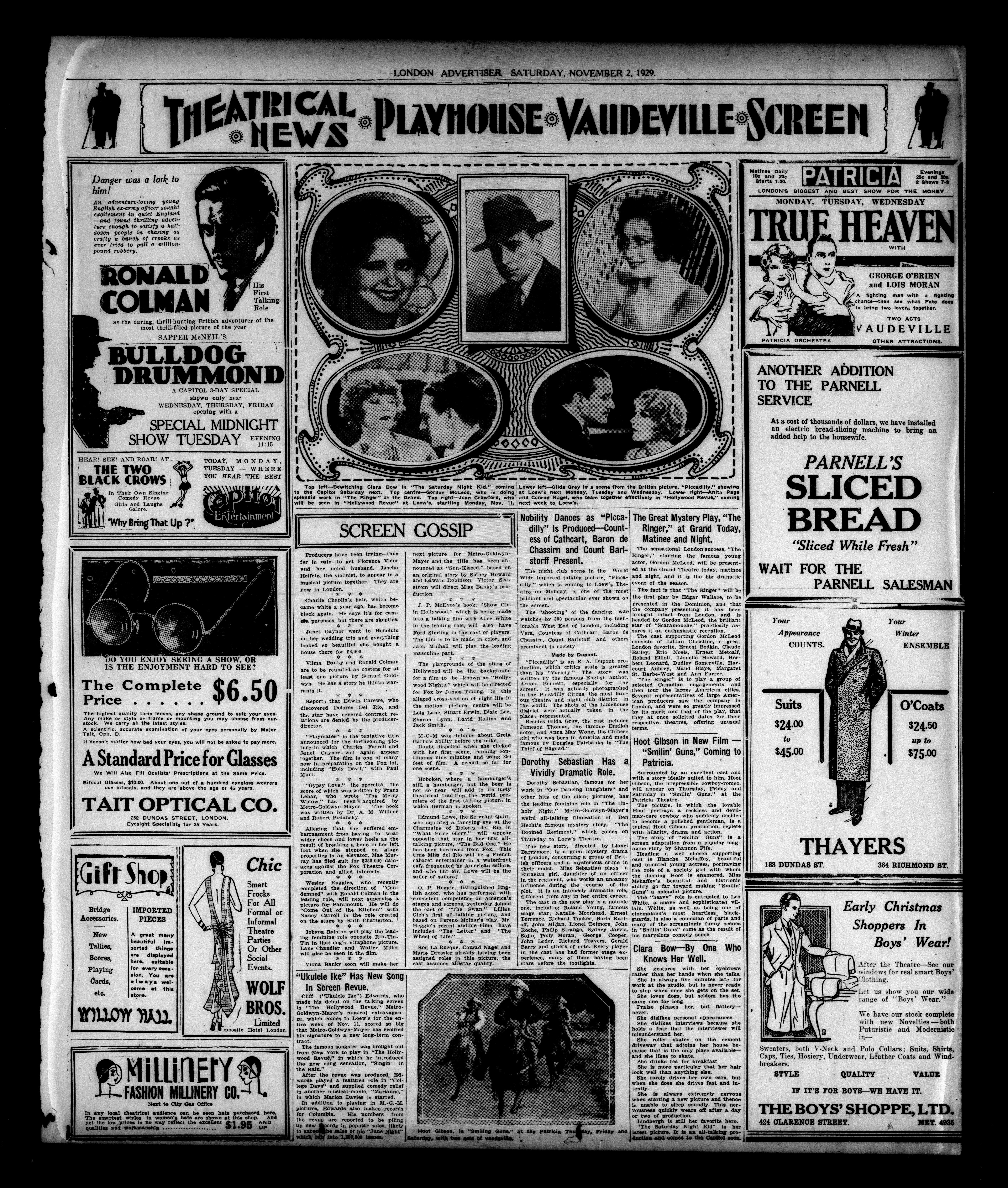 London, Ontario : London Advertiser Company, Limited, [1929]; 20 images, 0 avec recherche en texte intégral