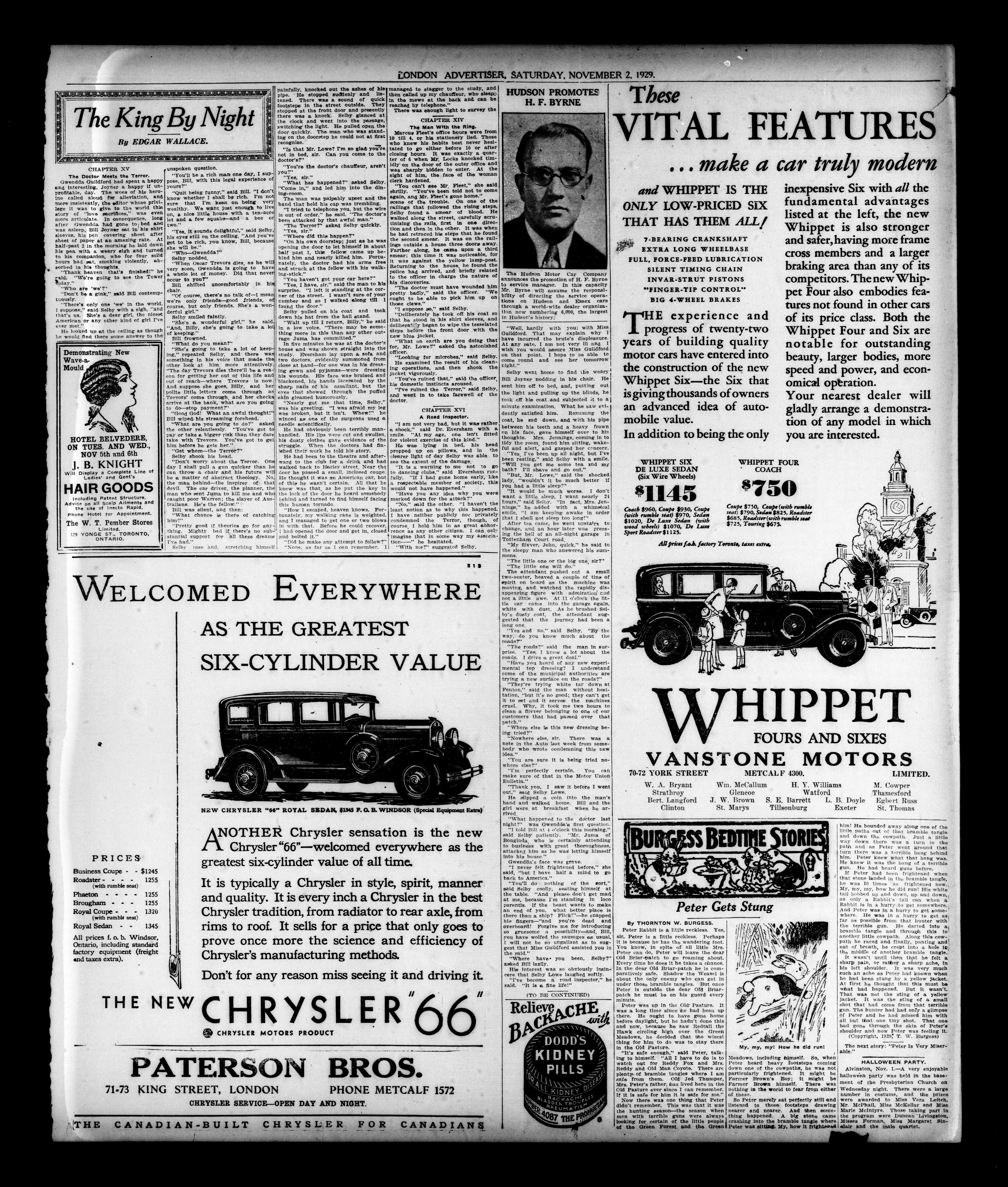 London, Ontario : London Advertiser Company, Limited, [1929]; 20 images, 0 avec recherche en texte intégral