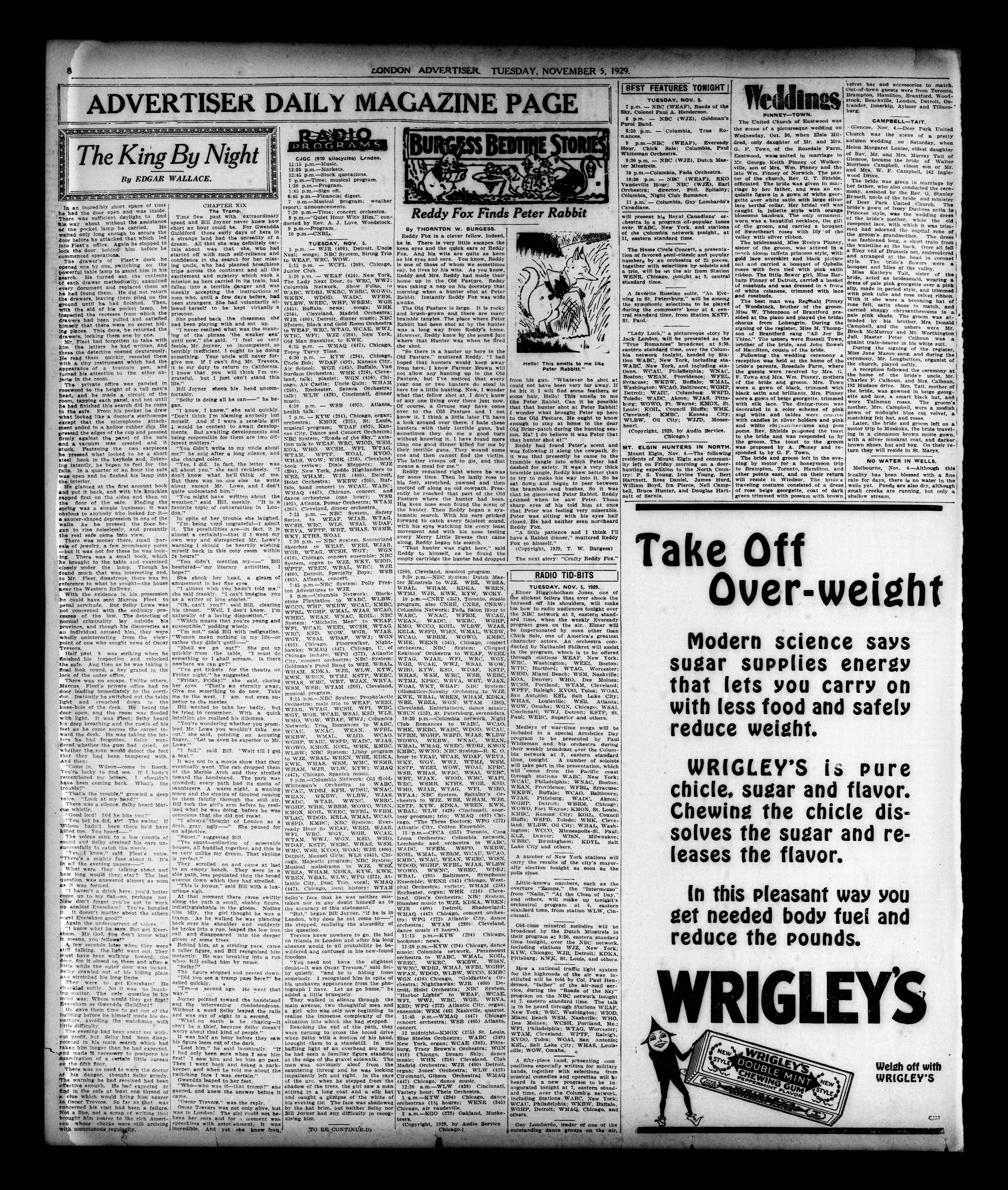 London, Ontario : London Advertiser Company, Limited, [1929]; 16 images, 0 avec recherche en texte intégral