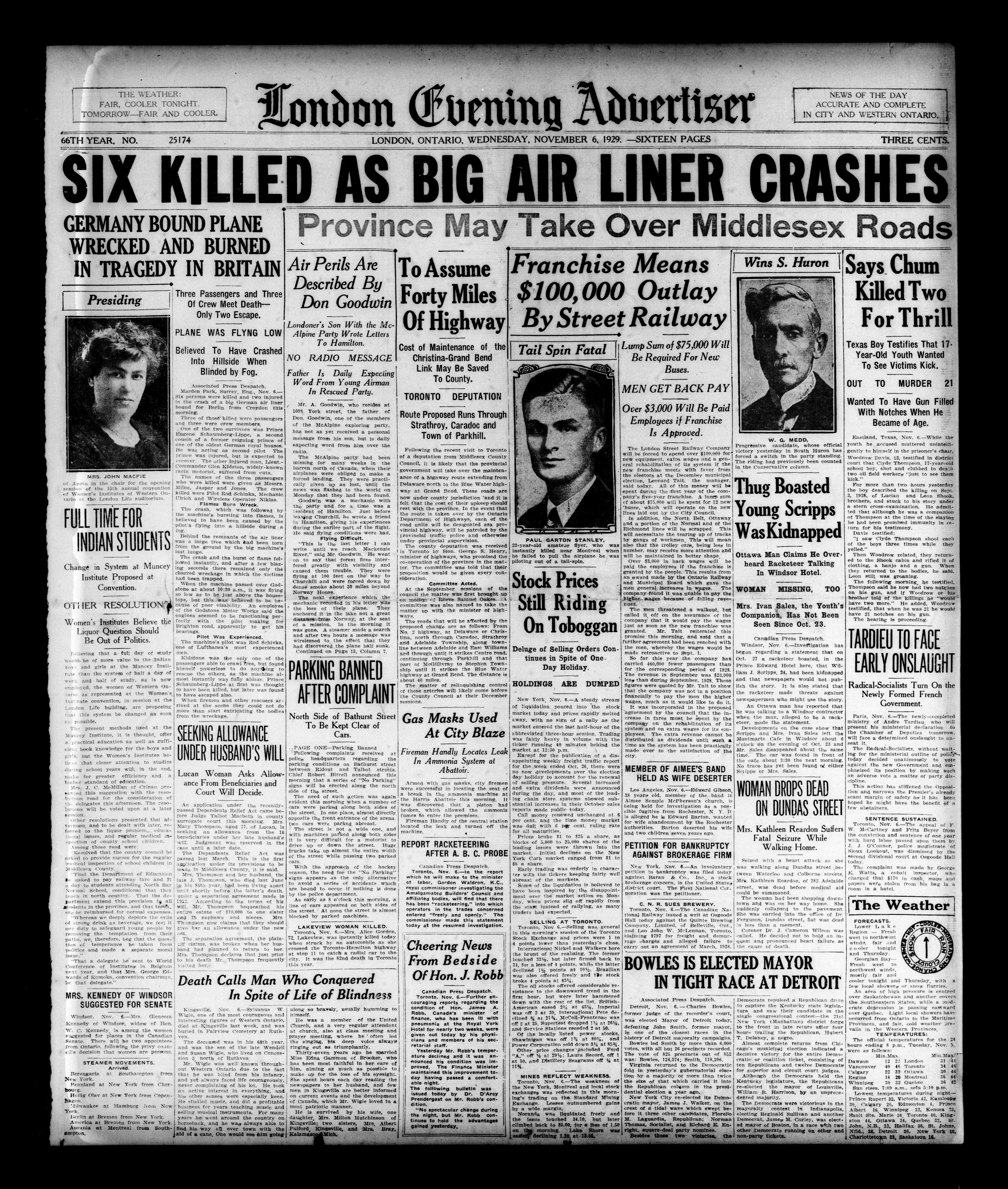 London evening advertiser : 66th Year, No. 25174 (November 6, 1929)