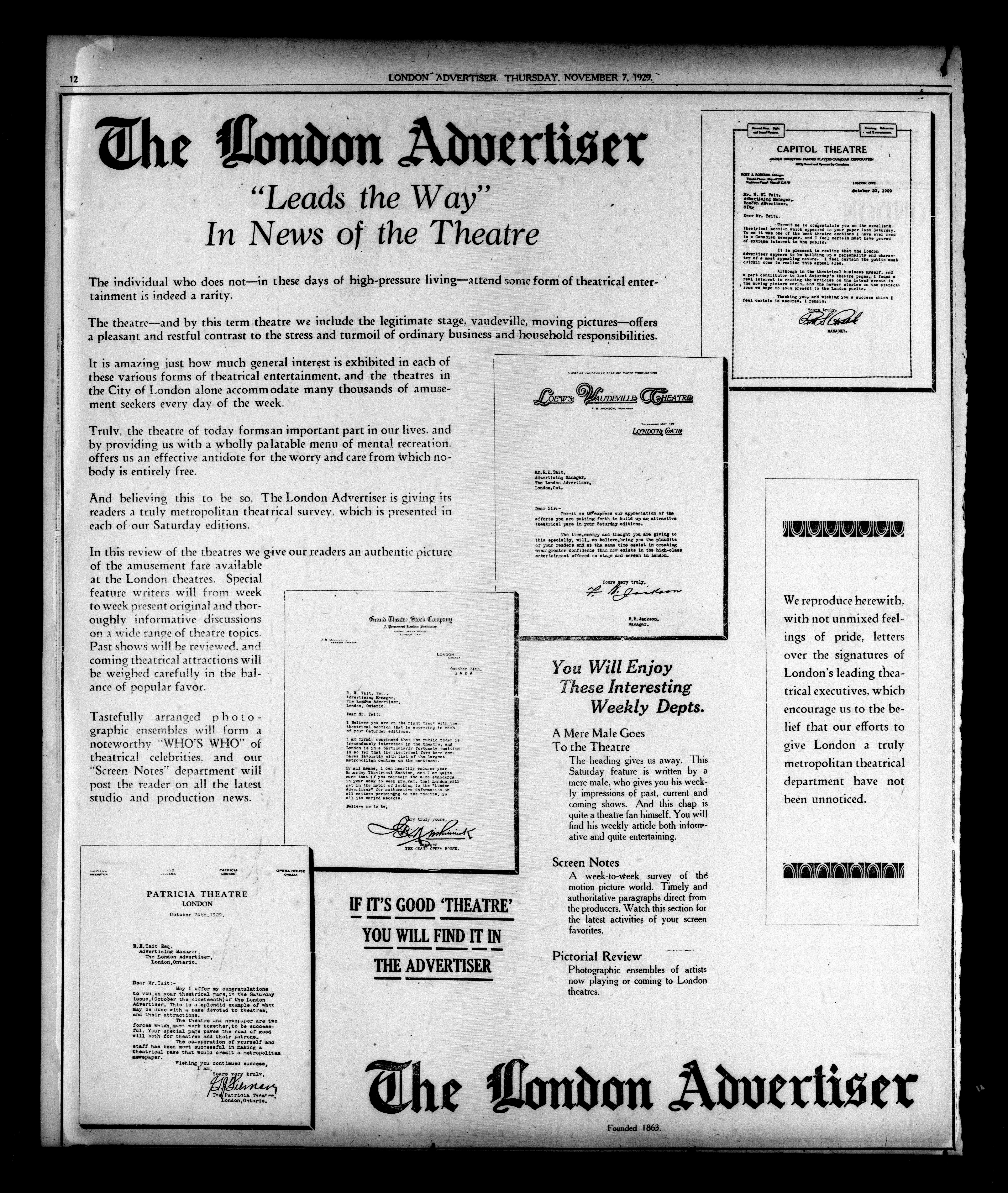 London, Ontario : London Advertiser Company, Limited, [1929]; 20 images, 0 avec recherche en texte intégral