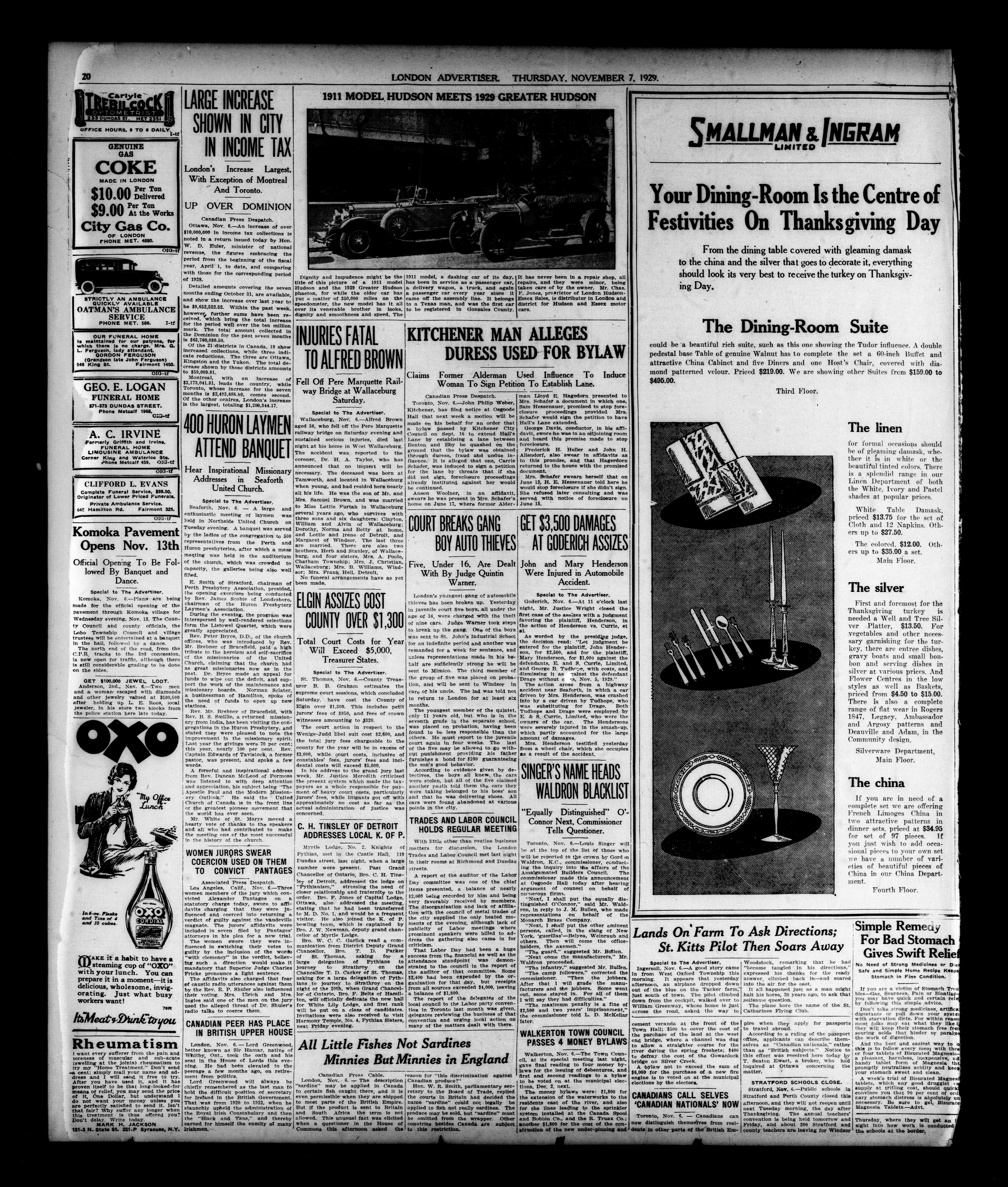 Aide London, Ontario : London Advertiser Company, Limited, [1929]; 20 images, 0 avec recherche en texte intégral