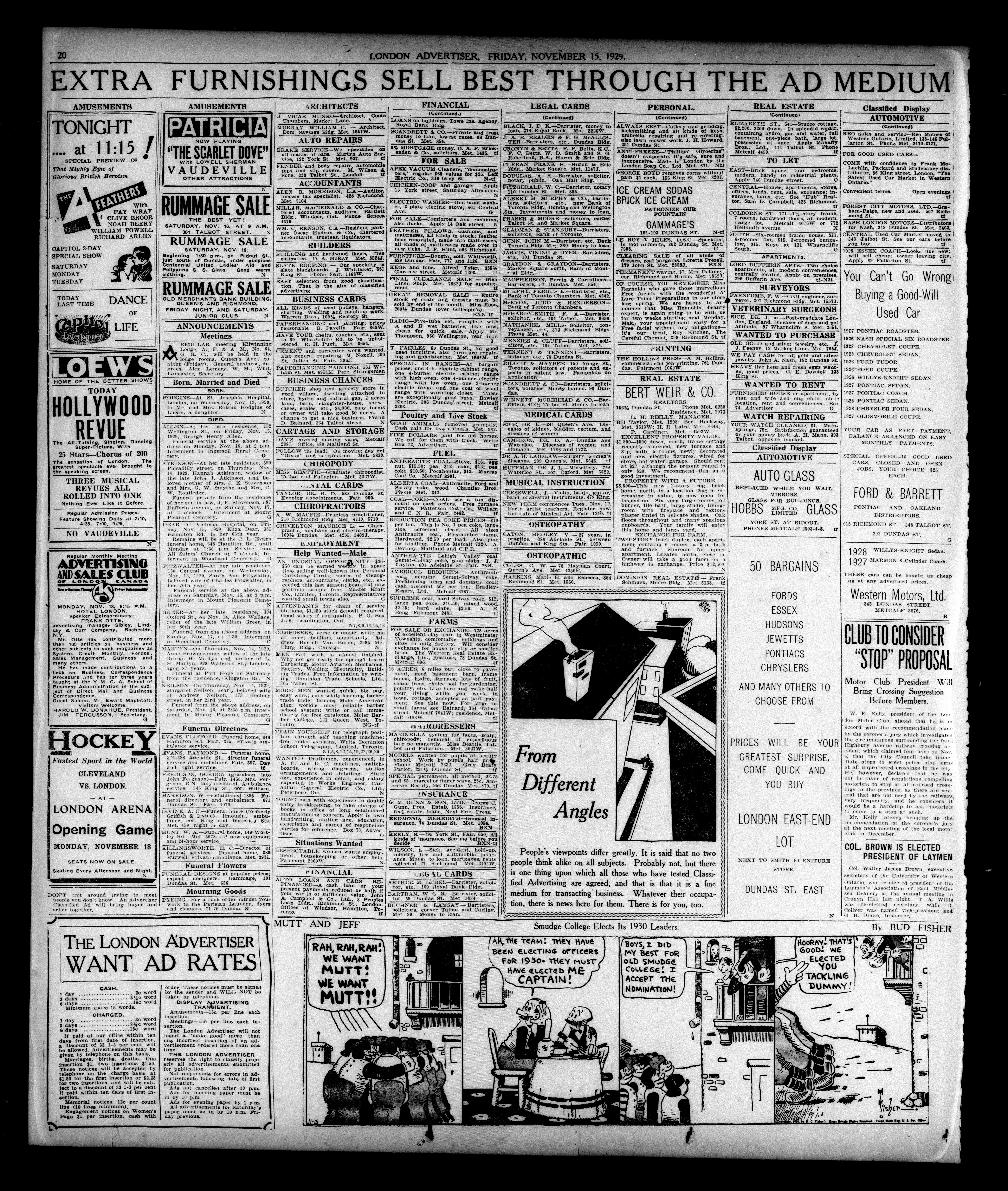 Aide London, Ontario : London Advertiser Company, Limited, [1929]; 22 images, 0 avec recherche en texte intégral