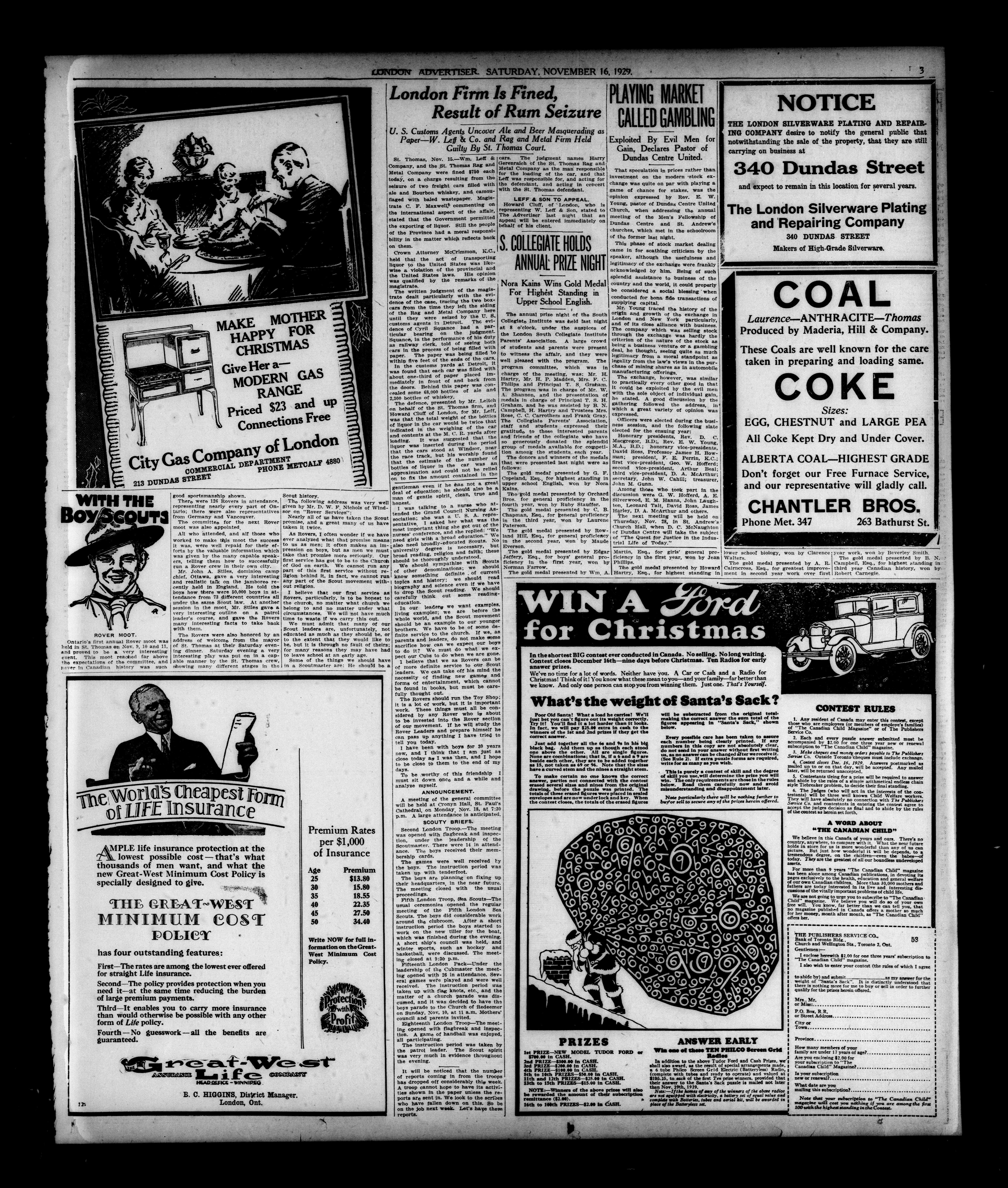 London, Ontario : London Advertiser Company, Limited, [1929]; 20 images, 0 avec recherche en texte intégral