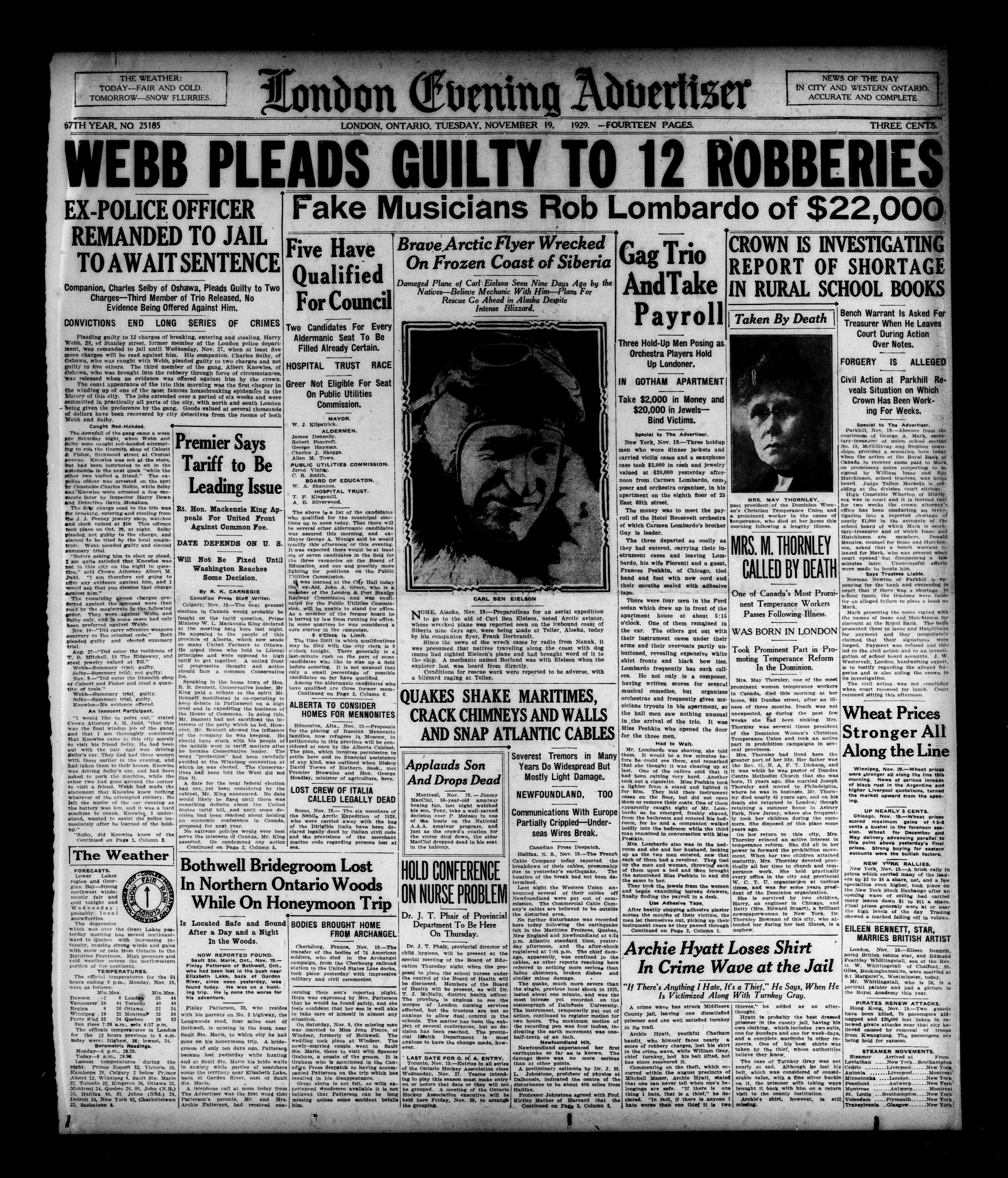 London, Ontario : London Advertiser Company, Limited, [1929]; 14 images, 0 avec recherche en texte intégral
