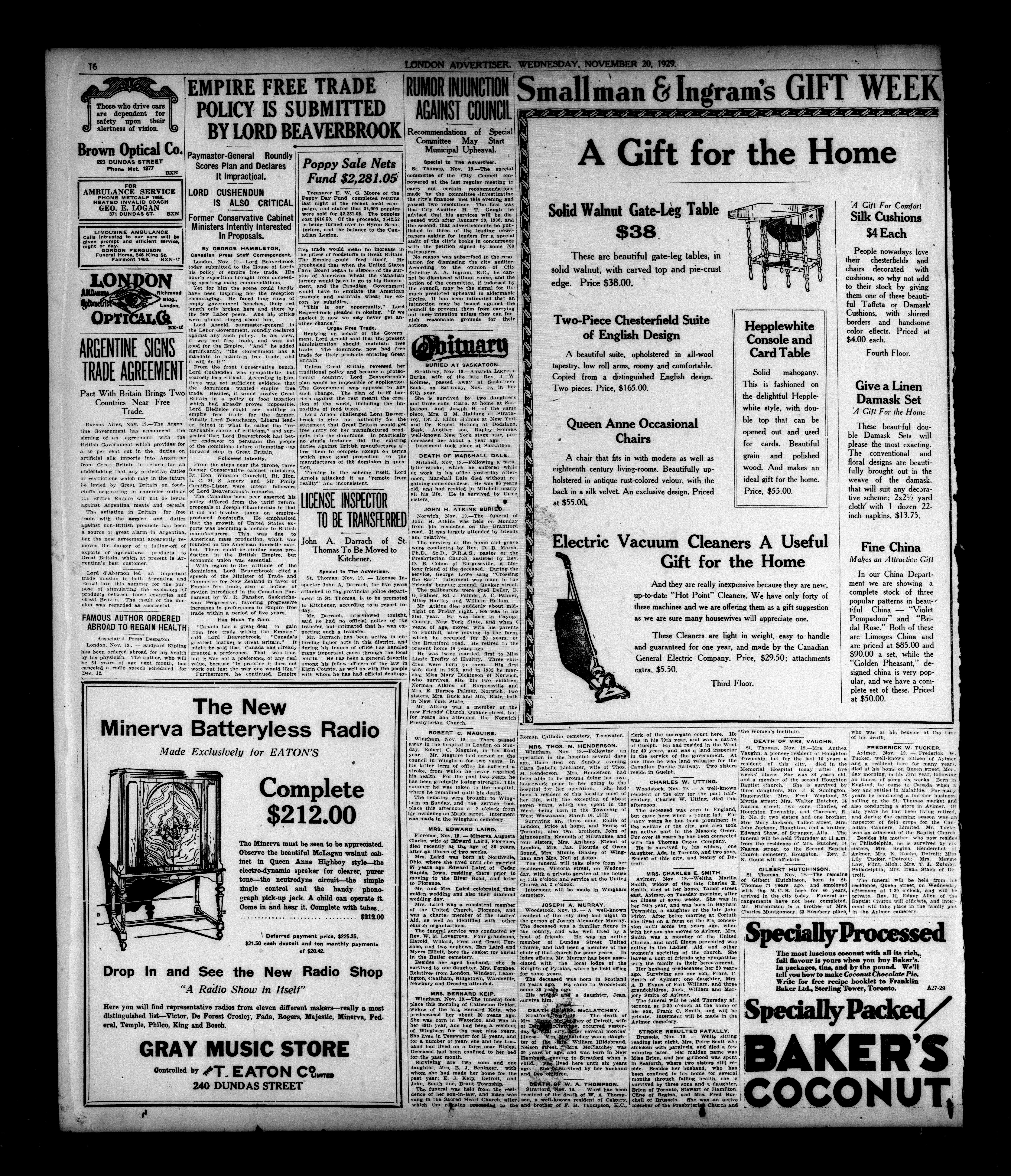 London, Ontario : London Advertiser Company, Limited, [1929]; 16 images, 0 avec recherche en texte intégral