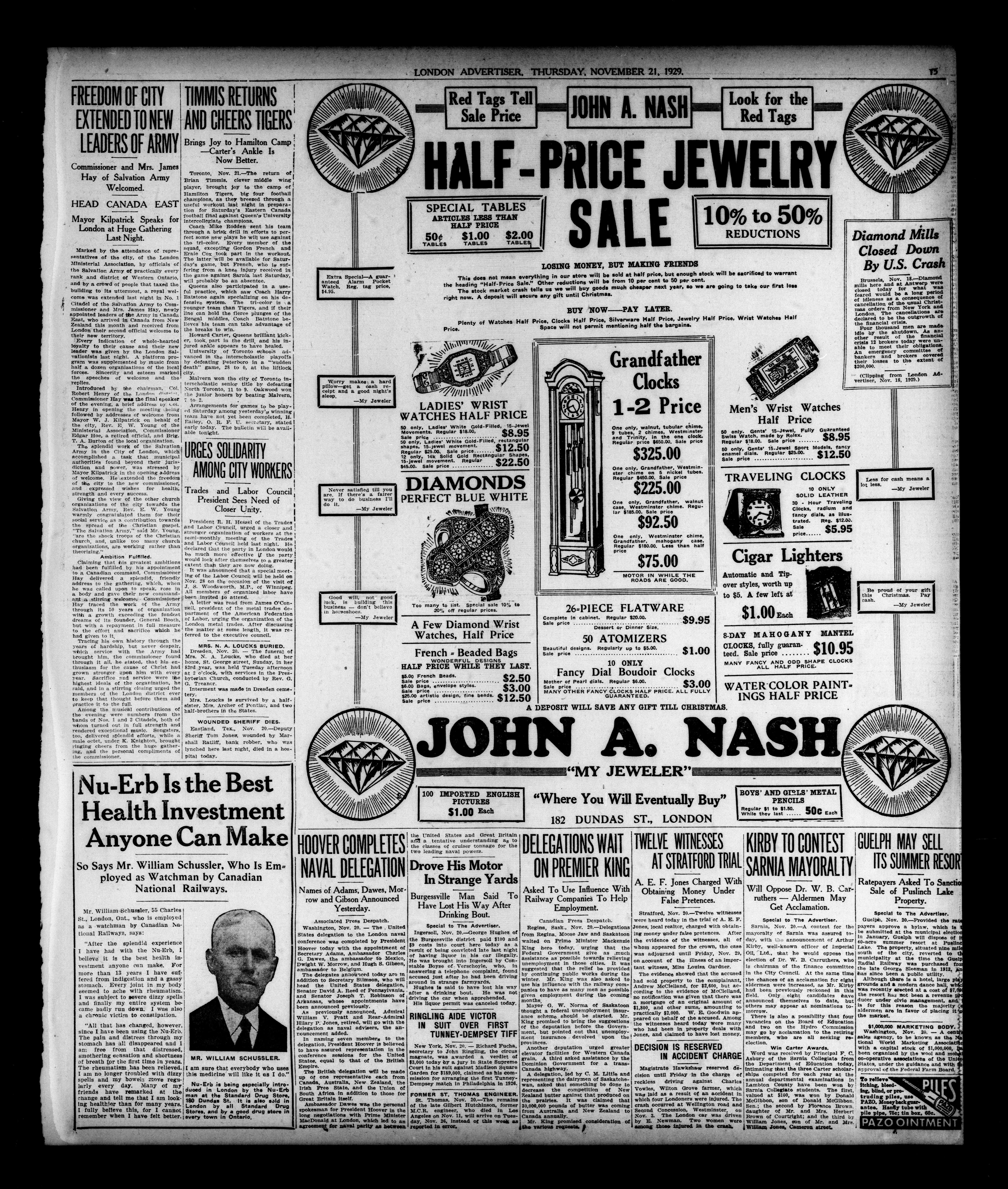 London, Ontario : London Advertiser Company, Limited, [1929]; 17 images, 0 avec recherche en texte intégral