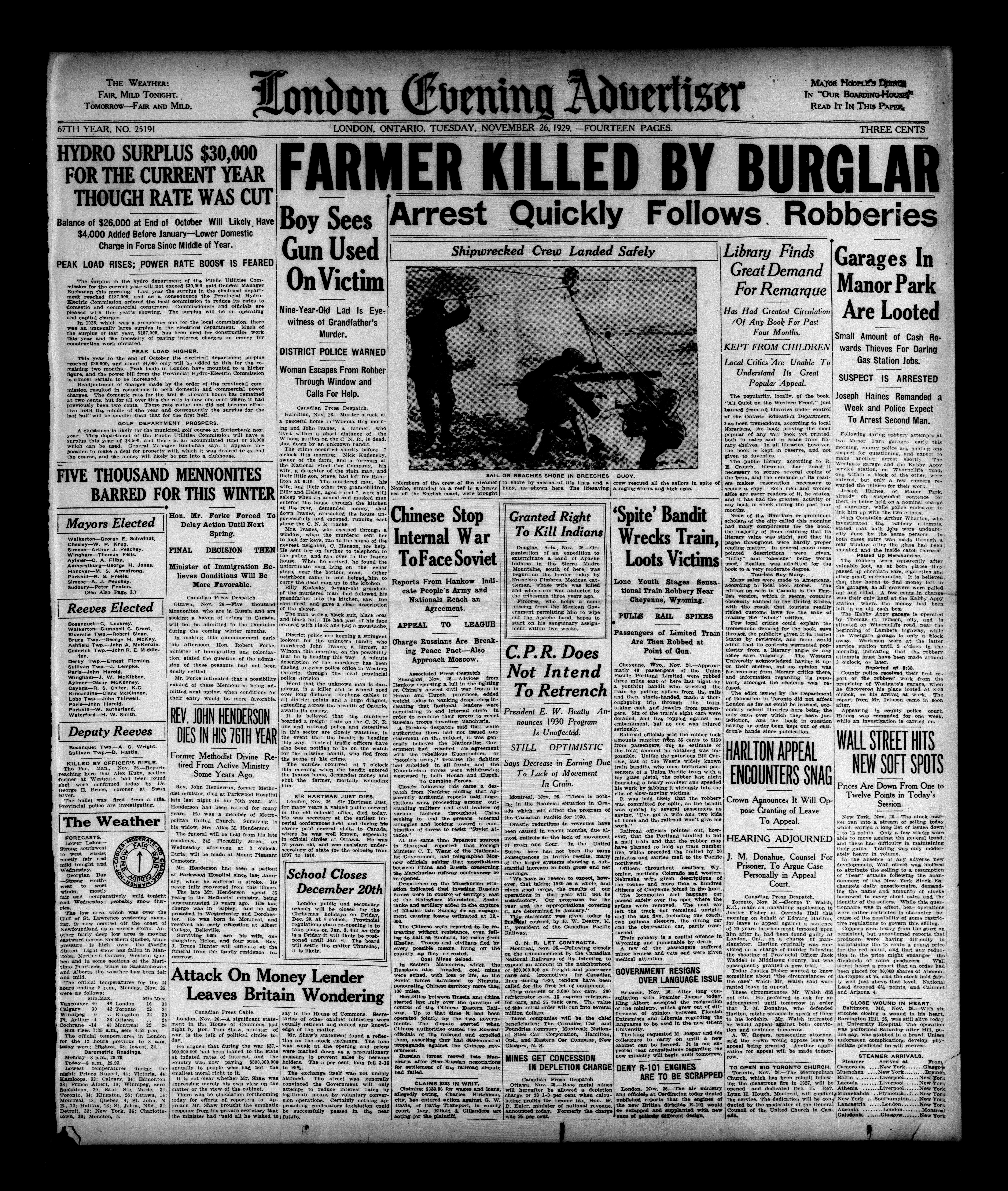 London, Ontario : London Advertiser Company, Limited, [1929]; 14 images, 0 avec recherche en texte intégral