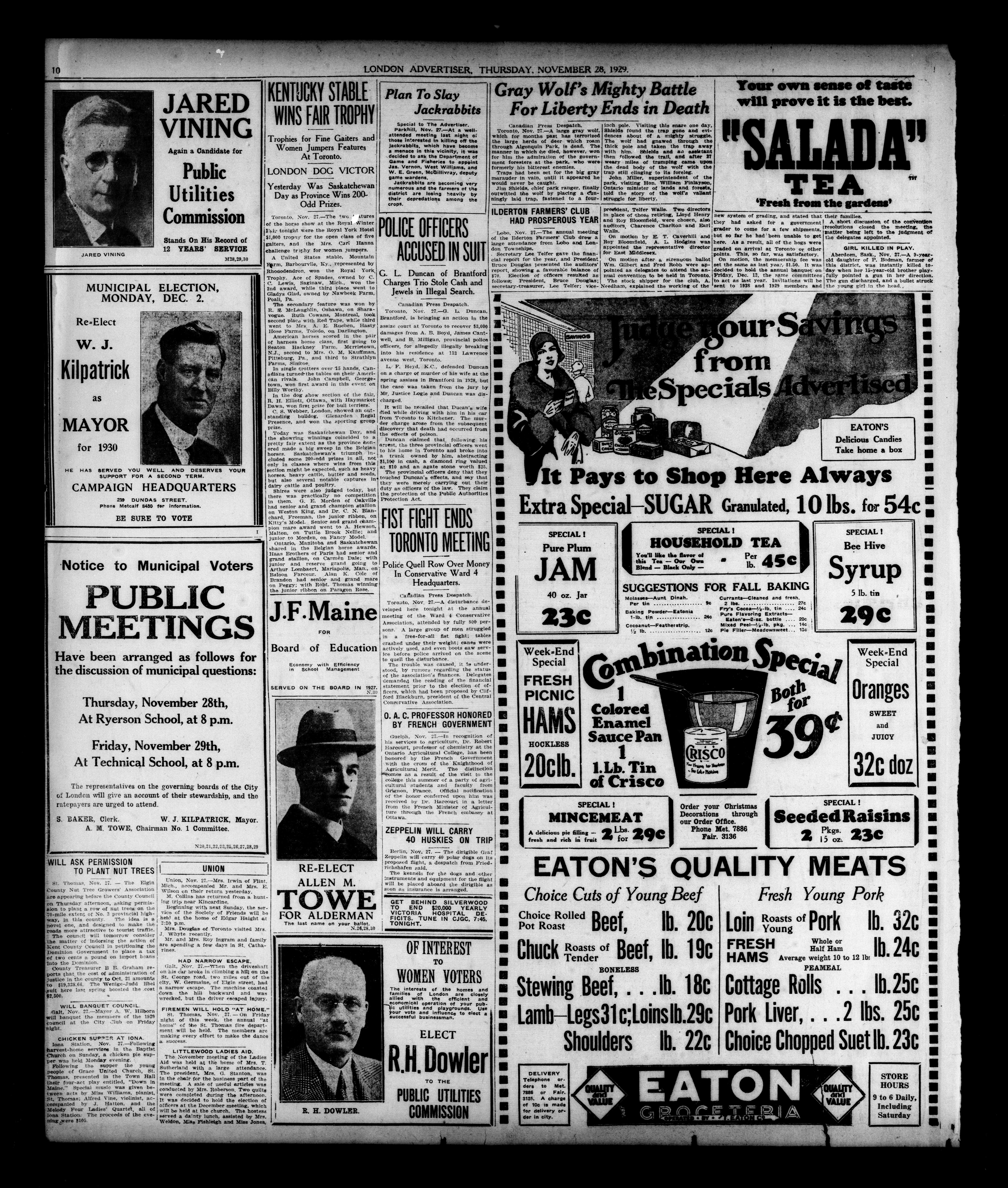 London, Ontario : London Advertiser Company, Limited, [1929]; 18 images, 0 avec recherche en texte intégral