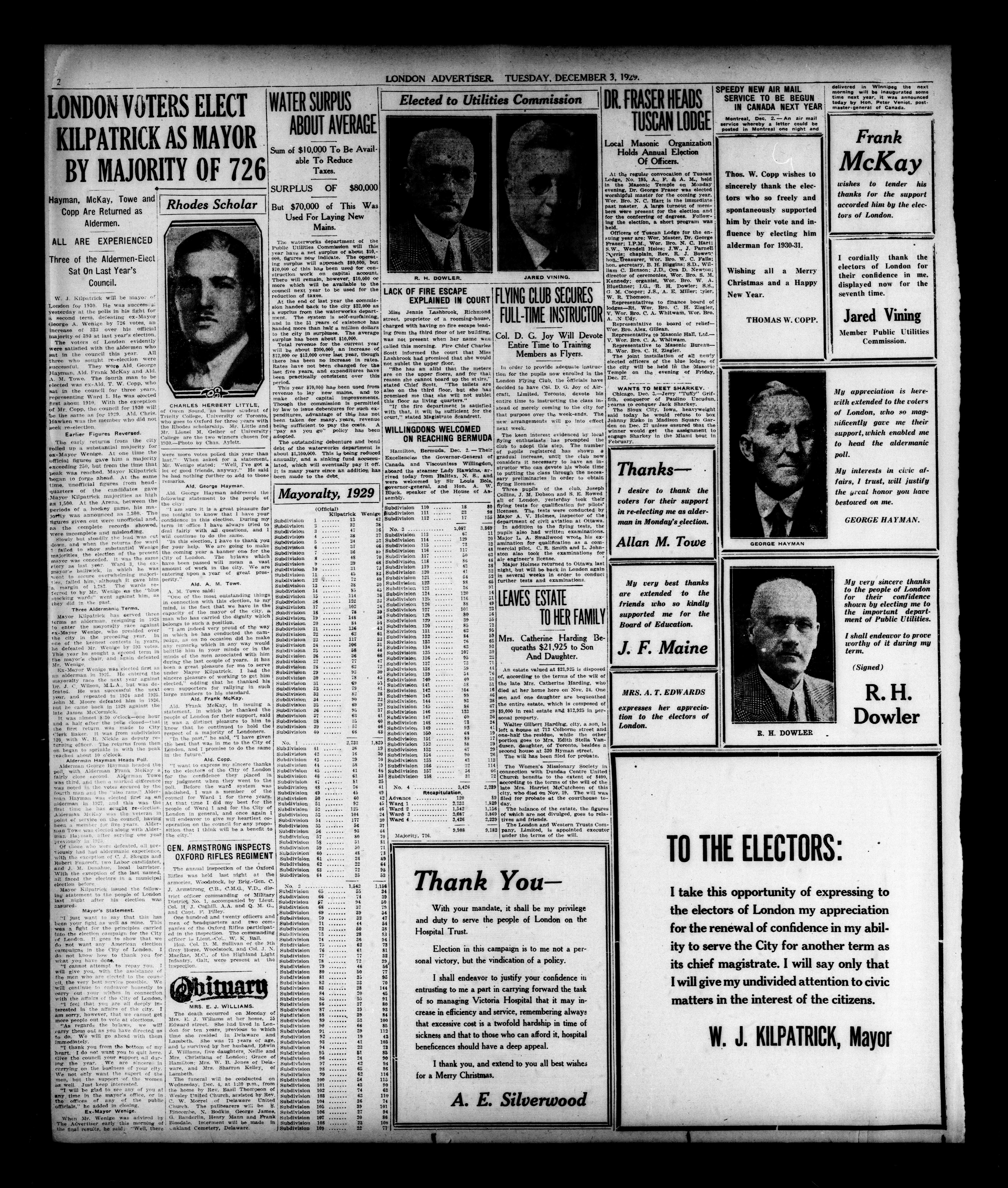 London evening advertiser : 67th Year, No. 25197 (December 3, 1929) - Published