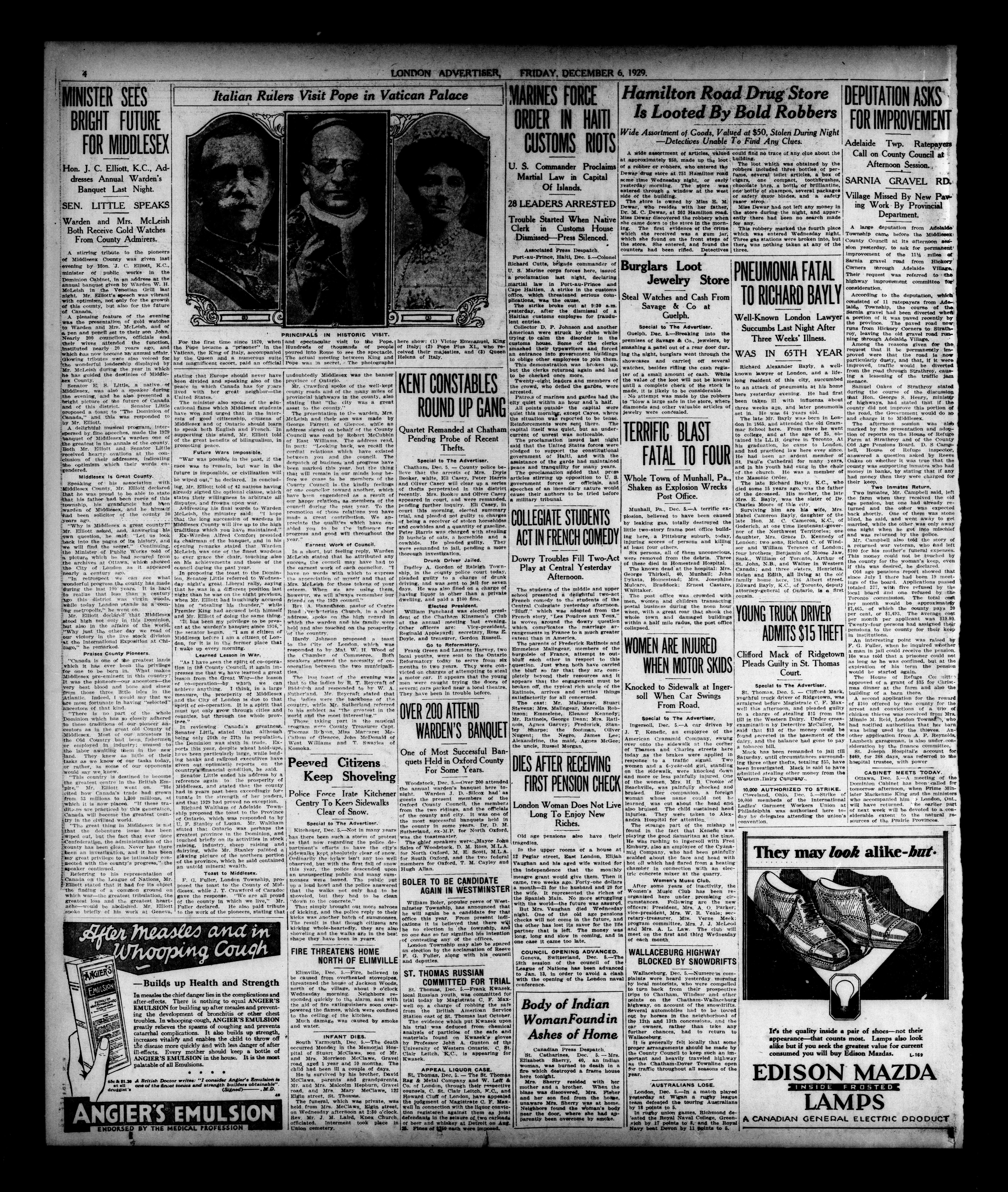 London evening advertiser : 67th Year, No. 25200 (December 6, 1929)