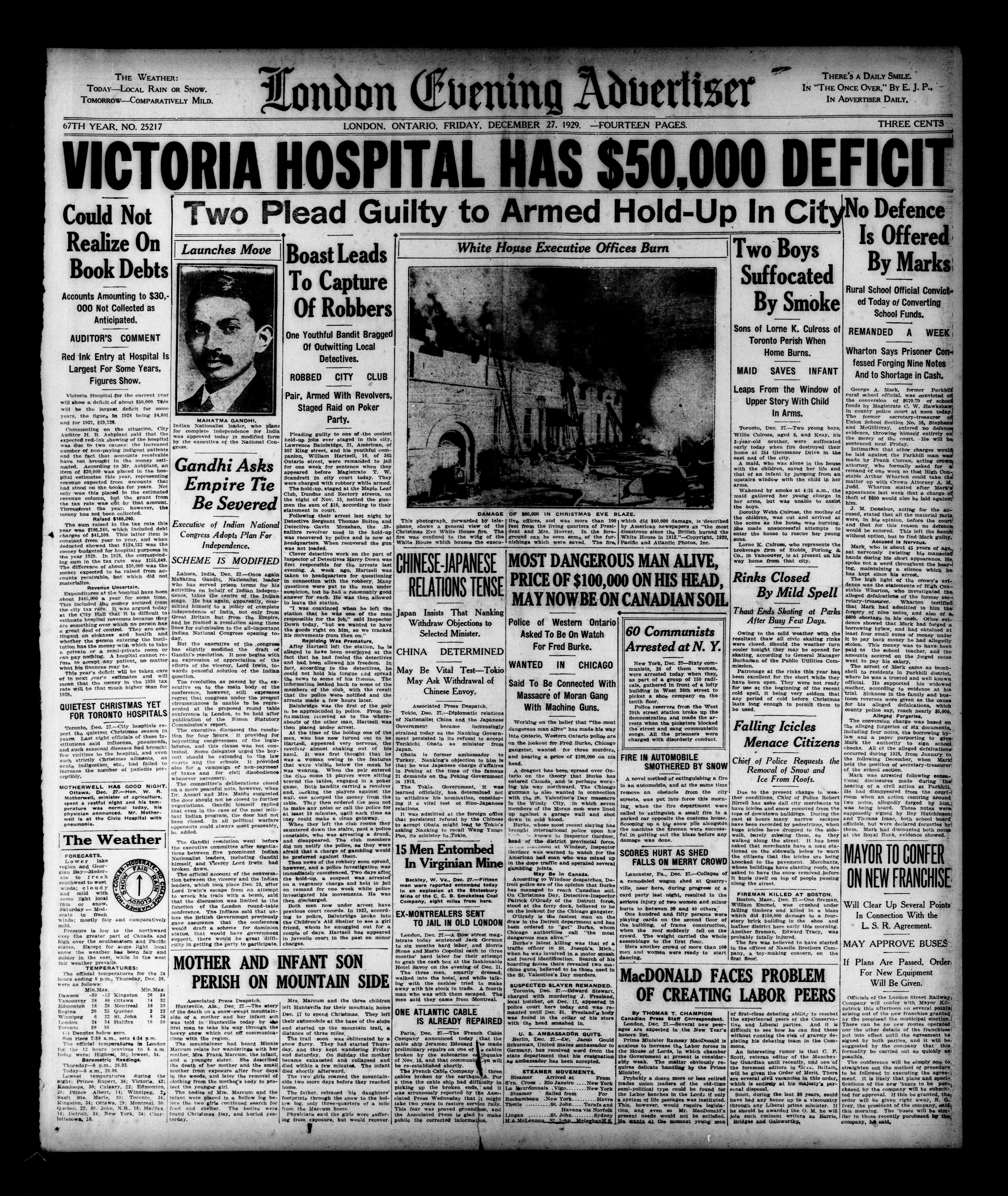 London evening advertiser : 67th Year, No. 25217 (December 27, 1929)