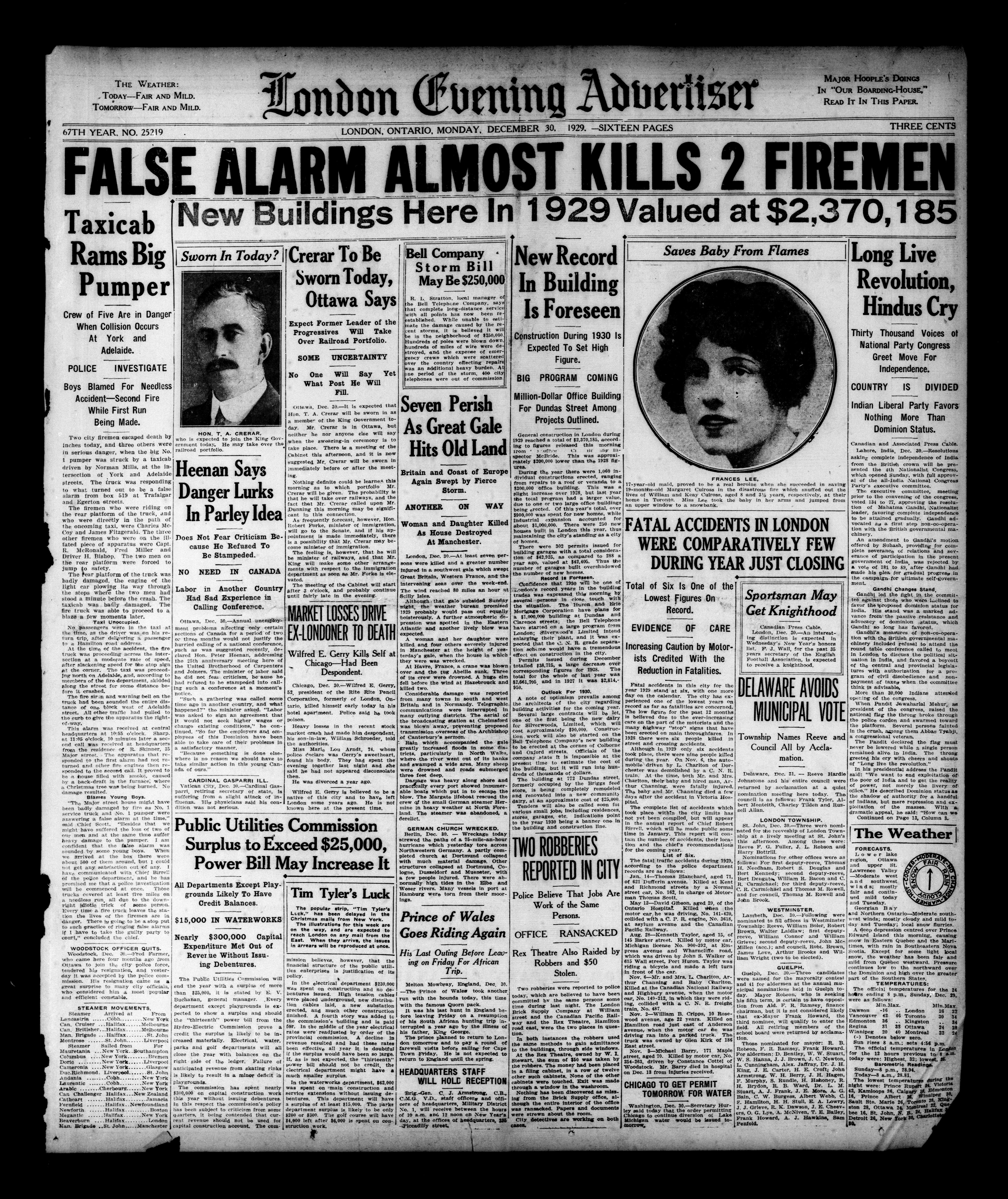 London evening advertiser : 67th Year, No. 25219 (December 30, 1929)
