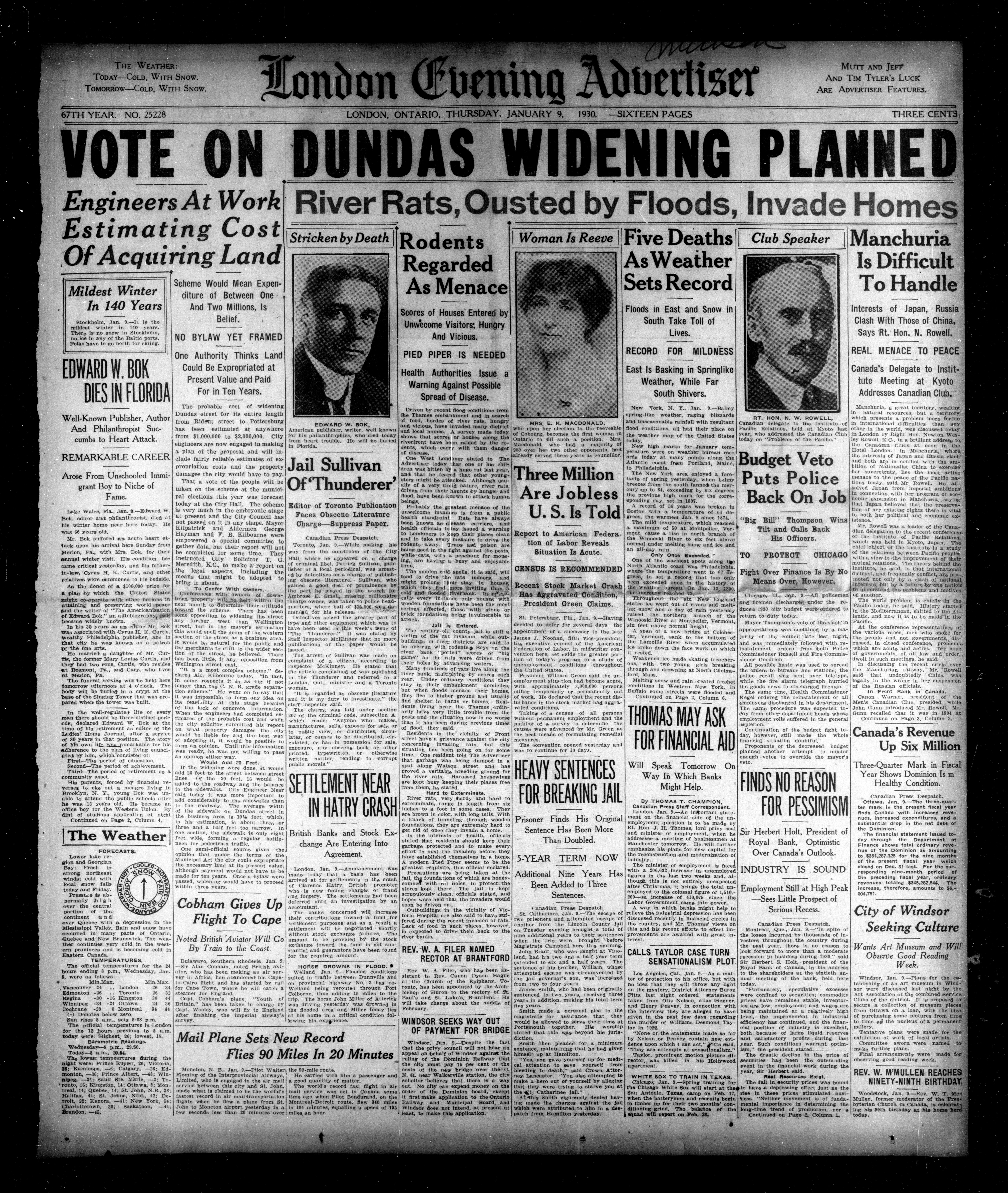 London evening advertiser : 67th Year, No. 25228 (January 9, 1930) - Adresse bibliographique