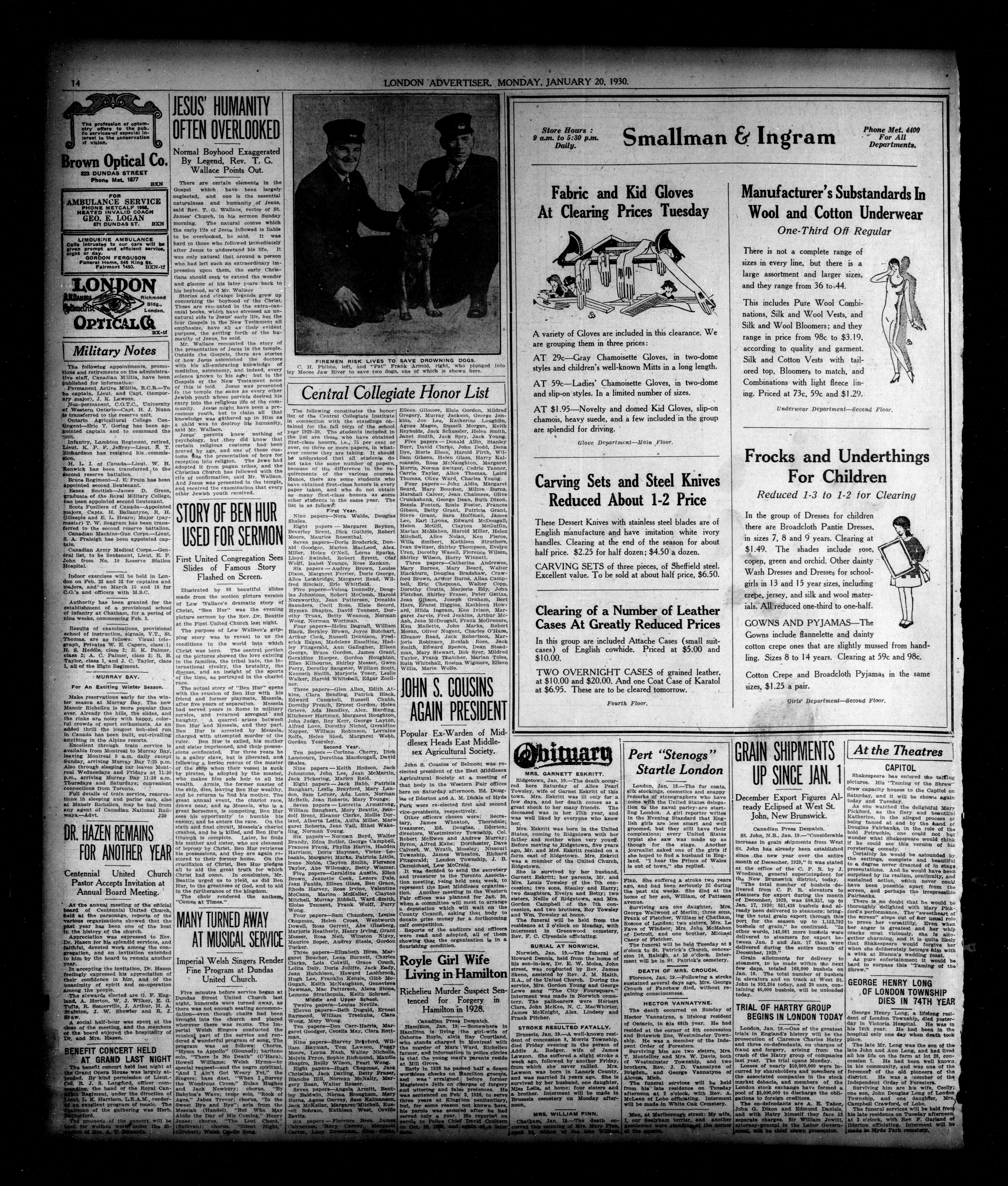 Aide London, Ontario : London Advertiser Company, Limited, [1930]; 14 images, 0 avec recherche en texte intégral