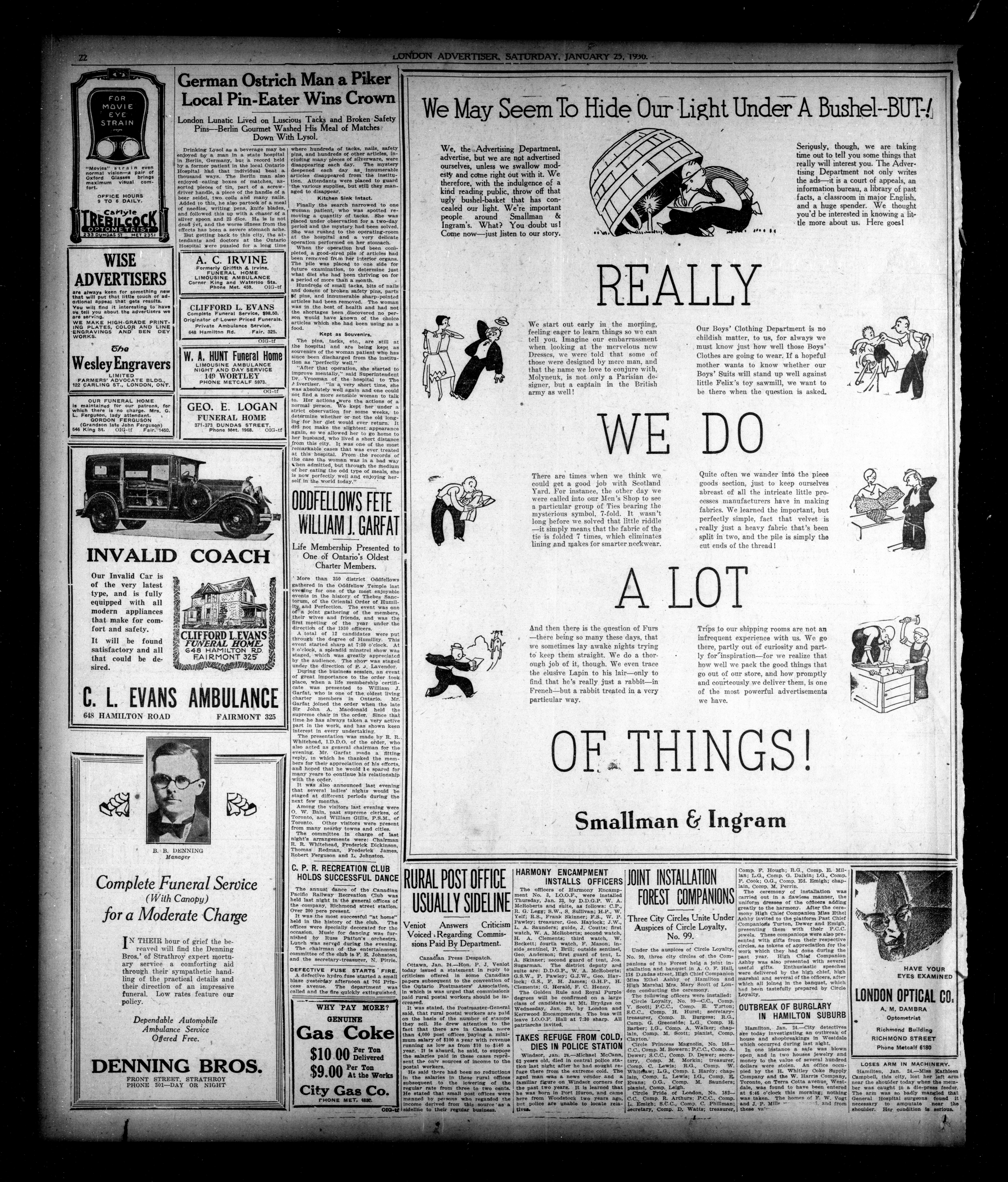 Aide London, Ontario : London Advertiser Company, Limited, [1930]; 22 images, 0 avec recherche en texte intégral