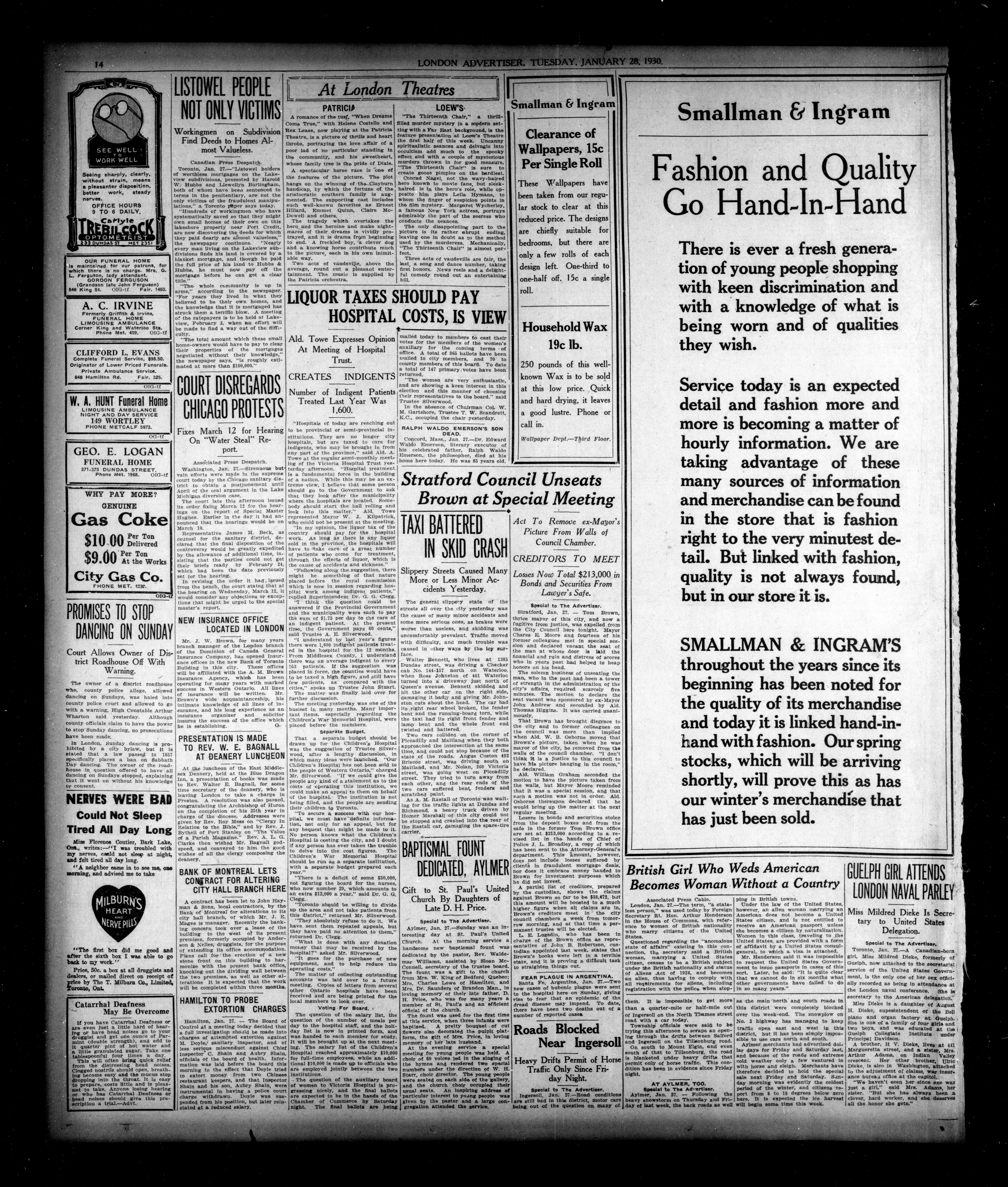 London, Ontario : London Advertiser Company, Limited, [1930]; 14 images, 0 avec recherche en texte intégral