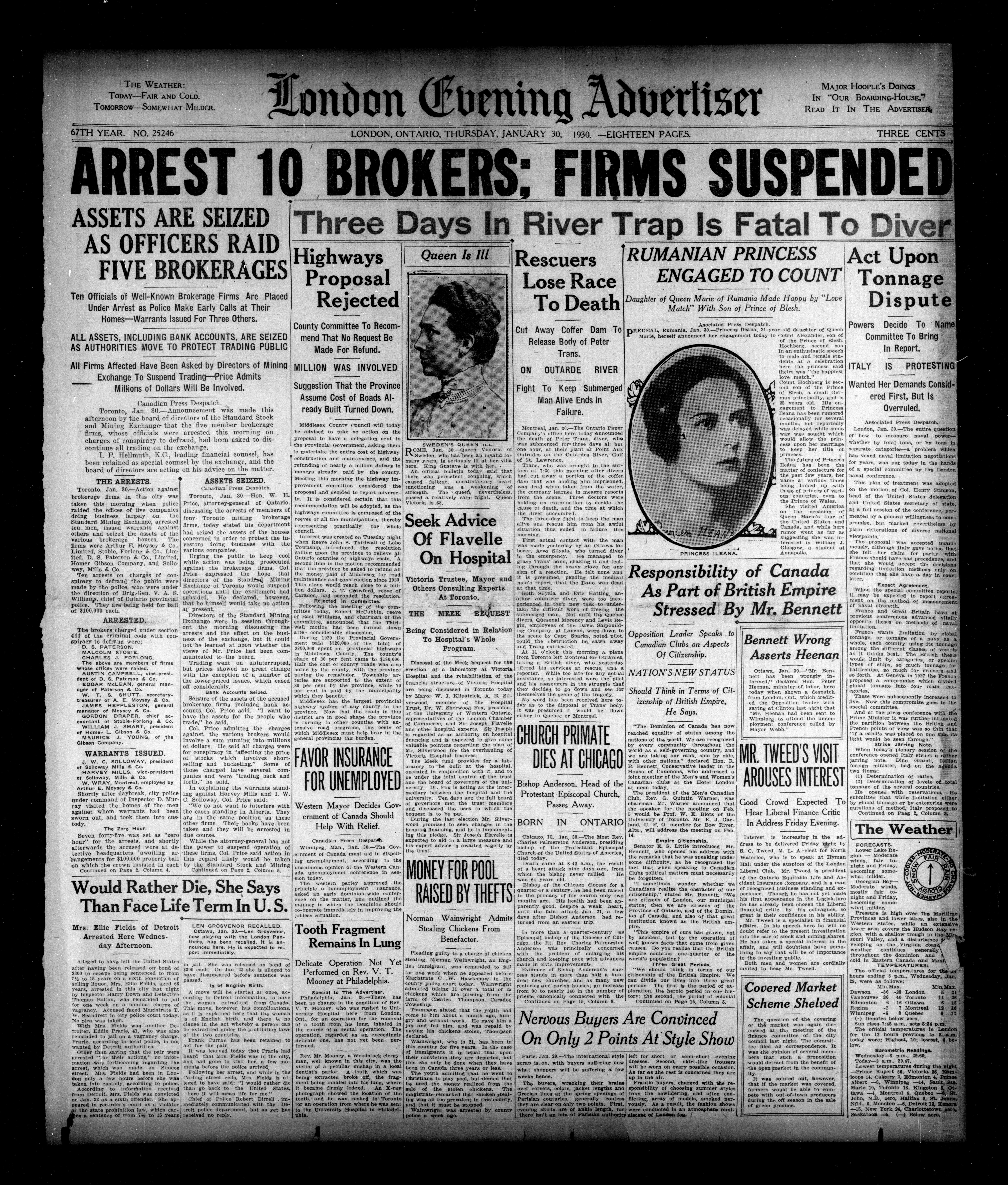 London, Ontario : London Advertiser Company, Limited, [1930]; 18 images, 0 avec recherche en texte intégral