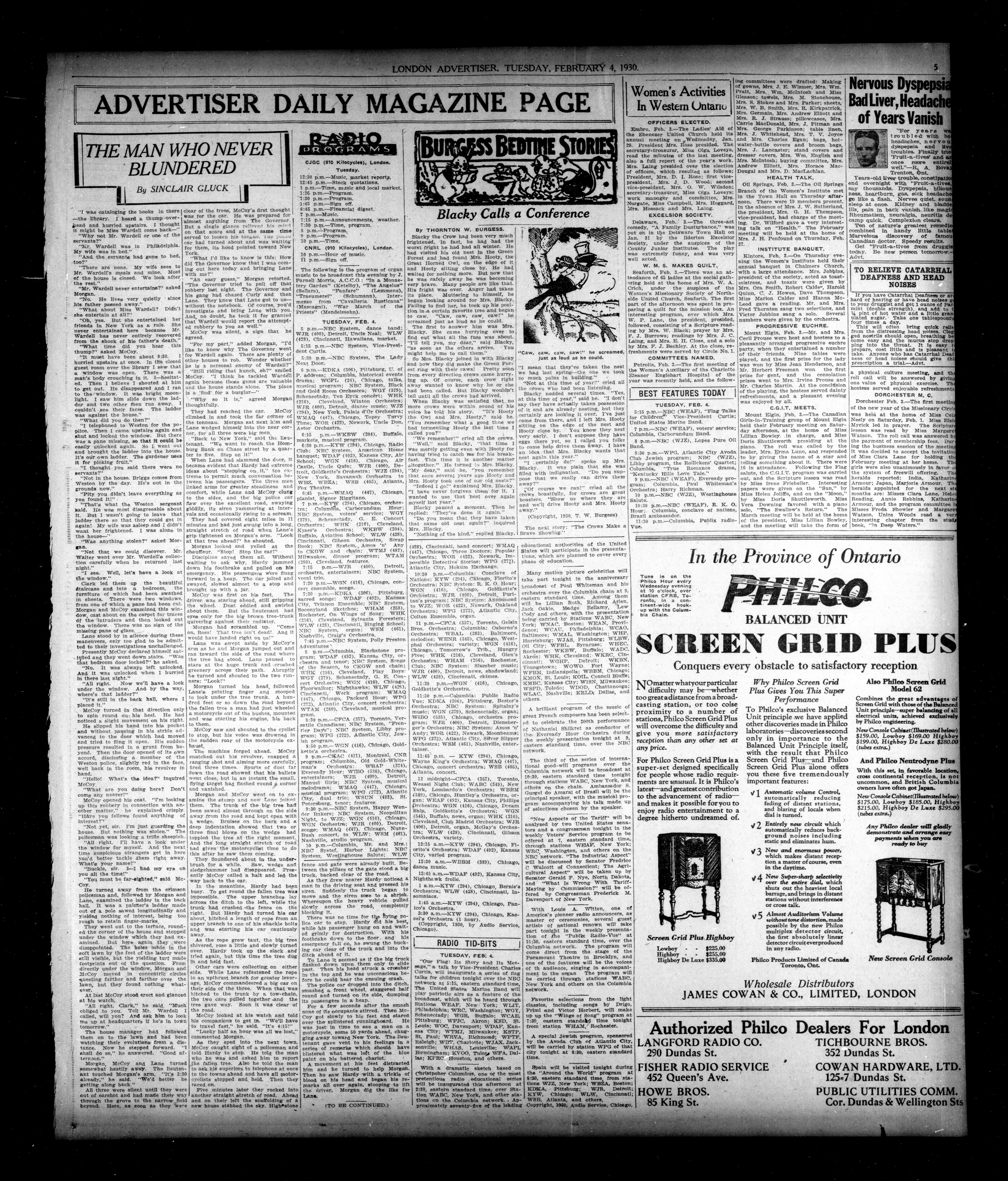 London, Ontario : London Advertiser Company, Limited, [1930]; 16 images, 0 avec recherche en texte intégral