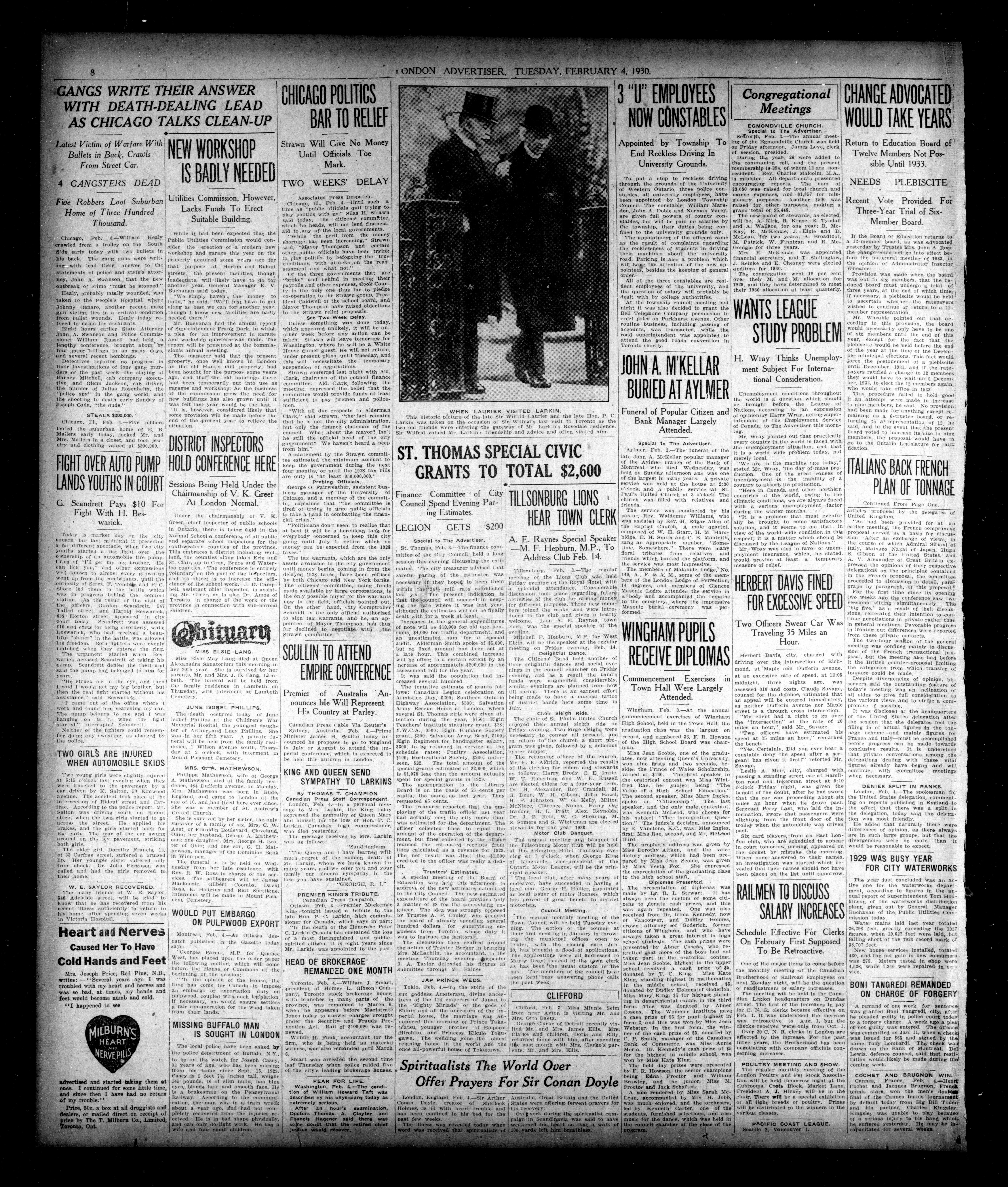 London, Ontario : London Advertiser Company, Limited, [1930]; 16 images, 0 avec recherche en texte intégral