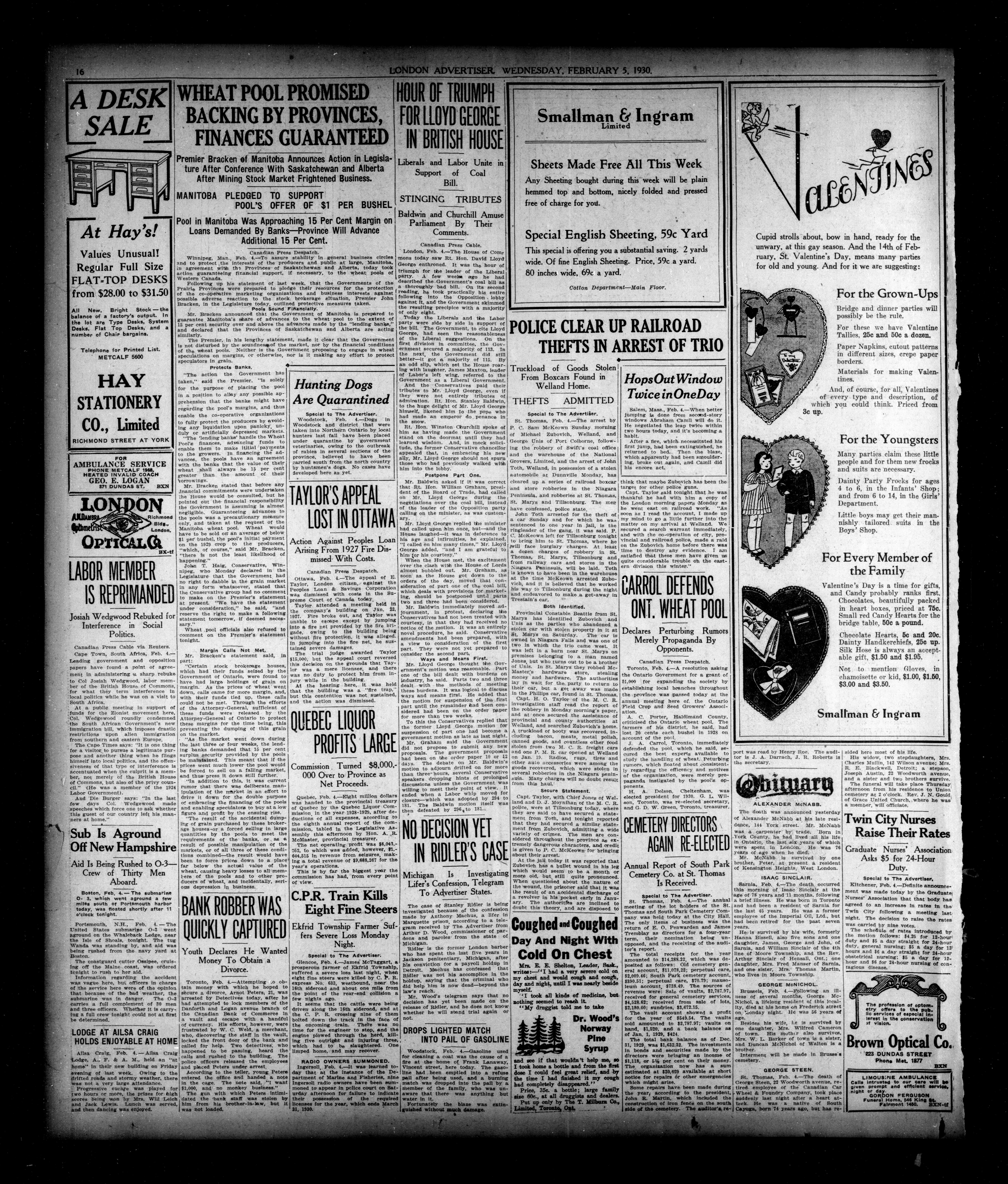 London, Ontario : London Advertiser Company, Limited, [1930]; 16 images, 0 avec recherche en texte intégral