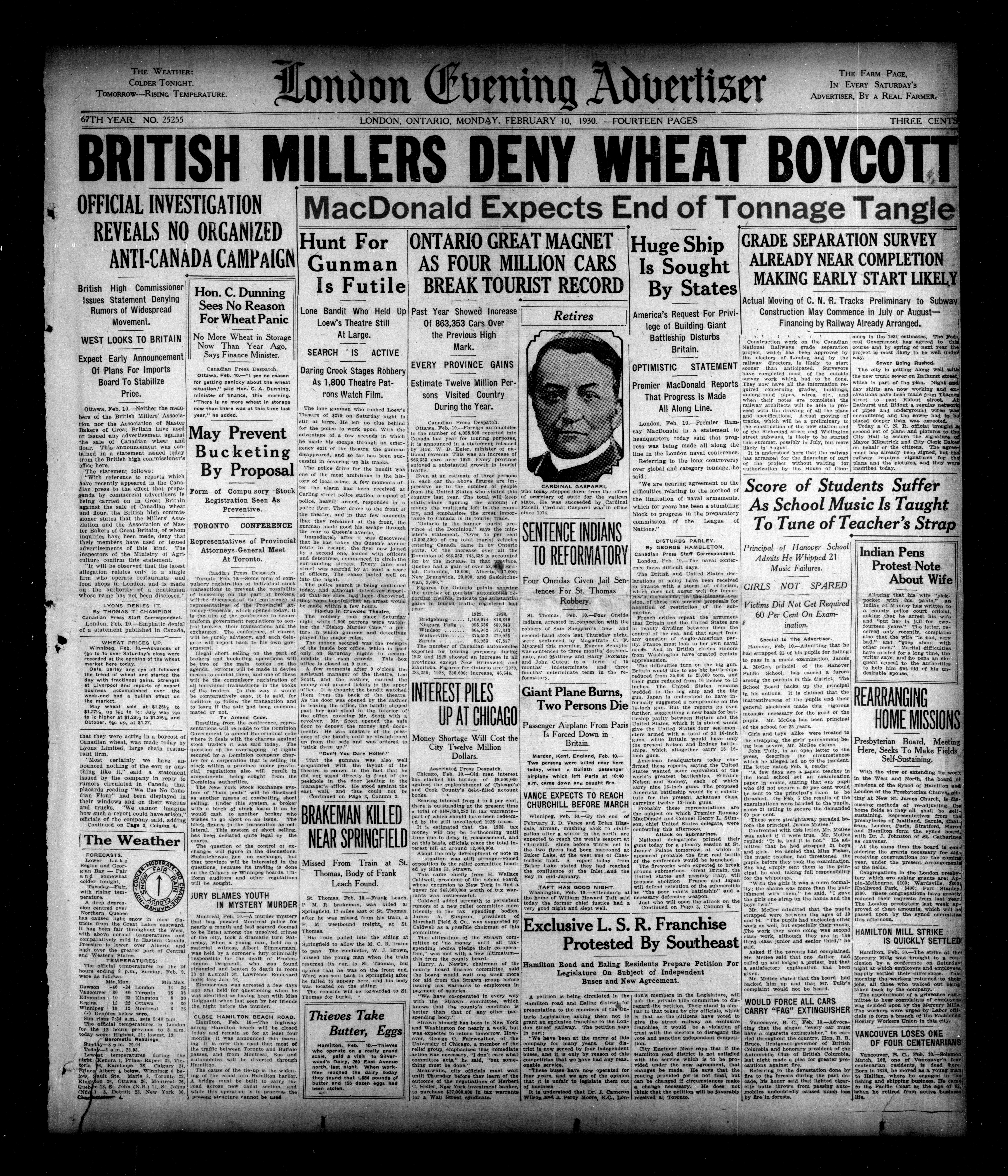 London, Ontario : London Advertiser Company, Limited, [1930]; 14 images, 0 avec recherche en texte intégral