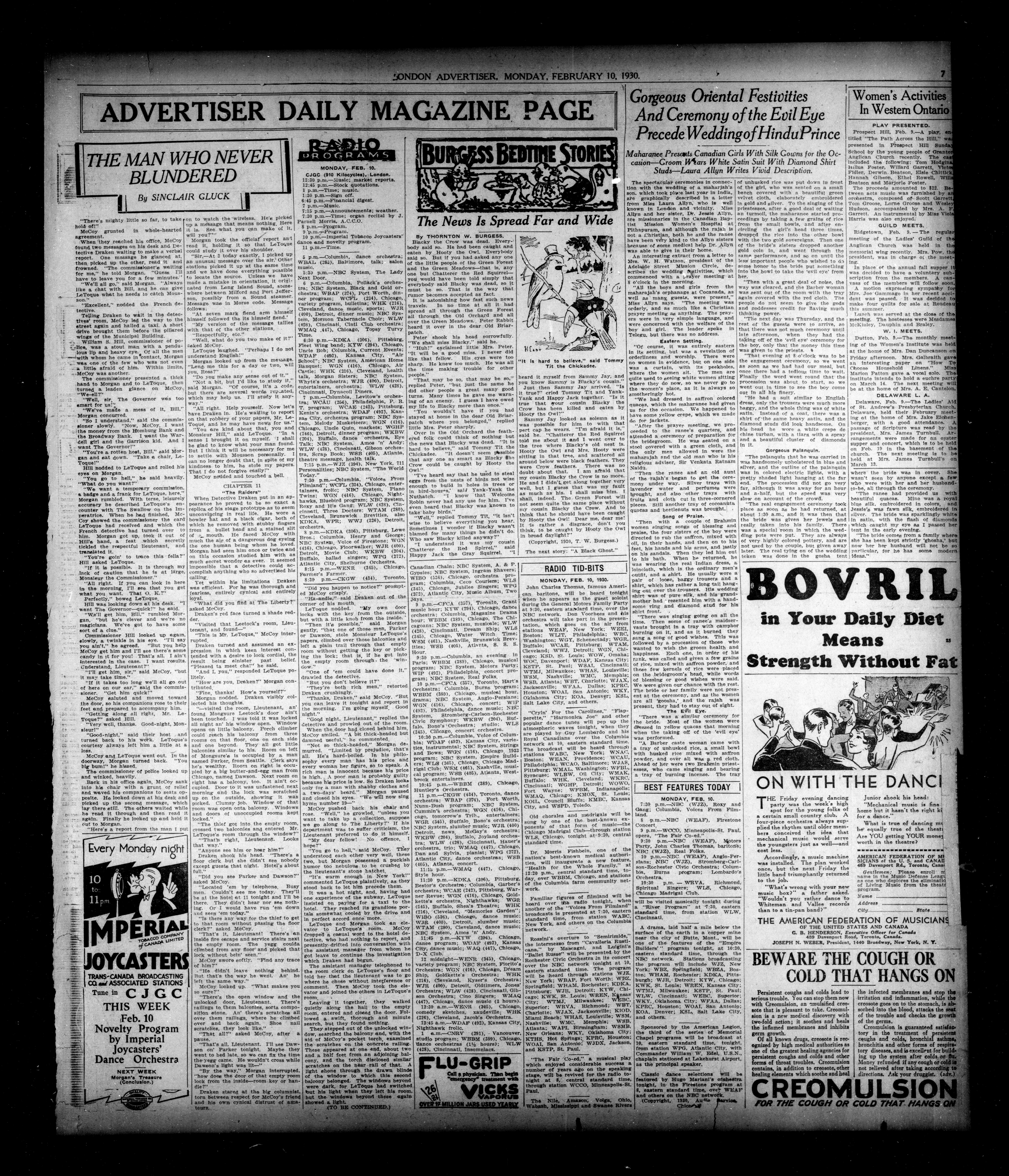London, Ontario : London Advertiser Company, Limited, [1930]; 14 images, 0 avec recherche en texte intégral