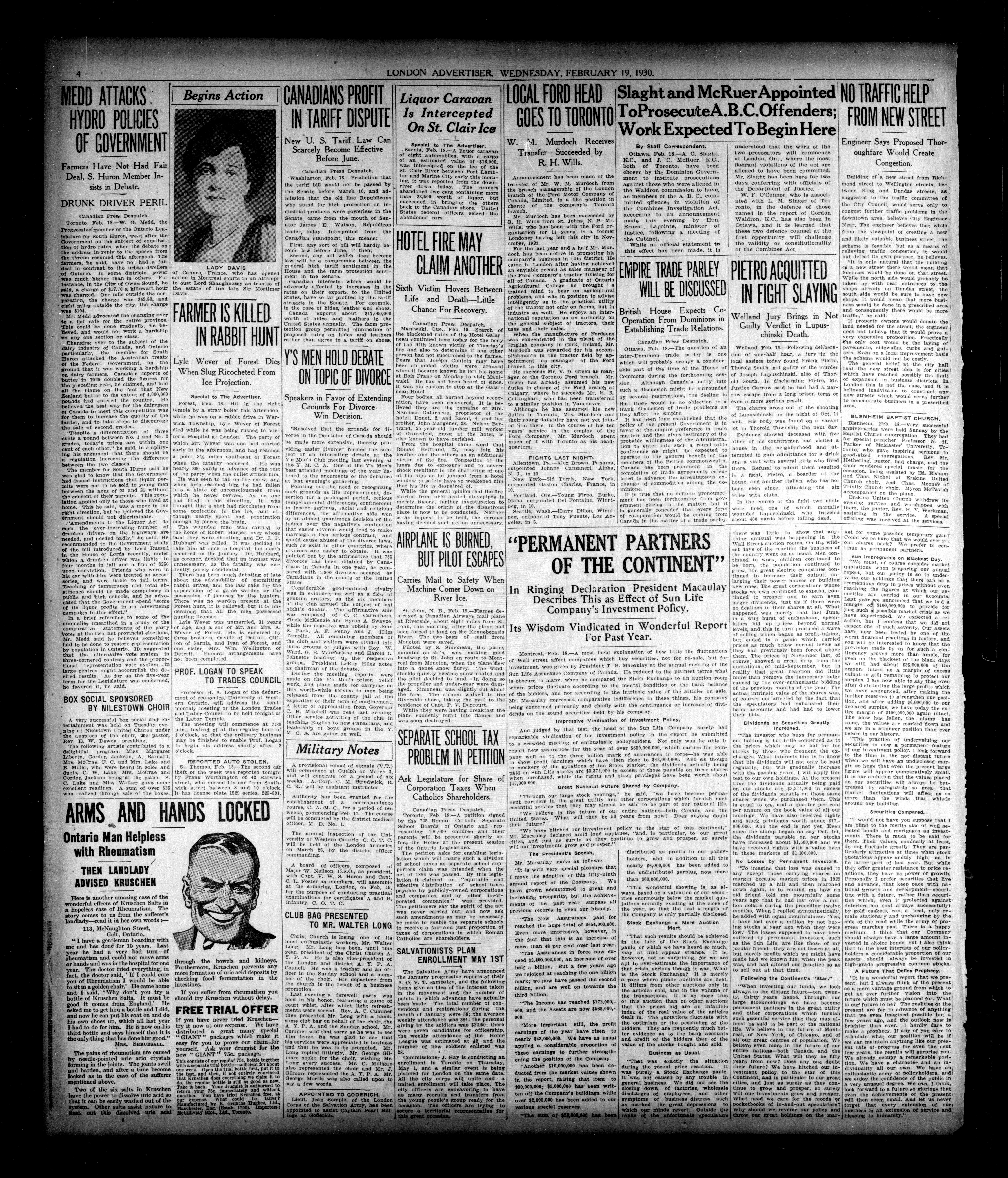 London, Ontario : London Advertiser Company, Limited, [1930]; 16 images, 0 with full-text search