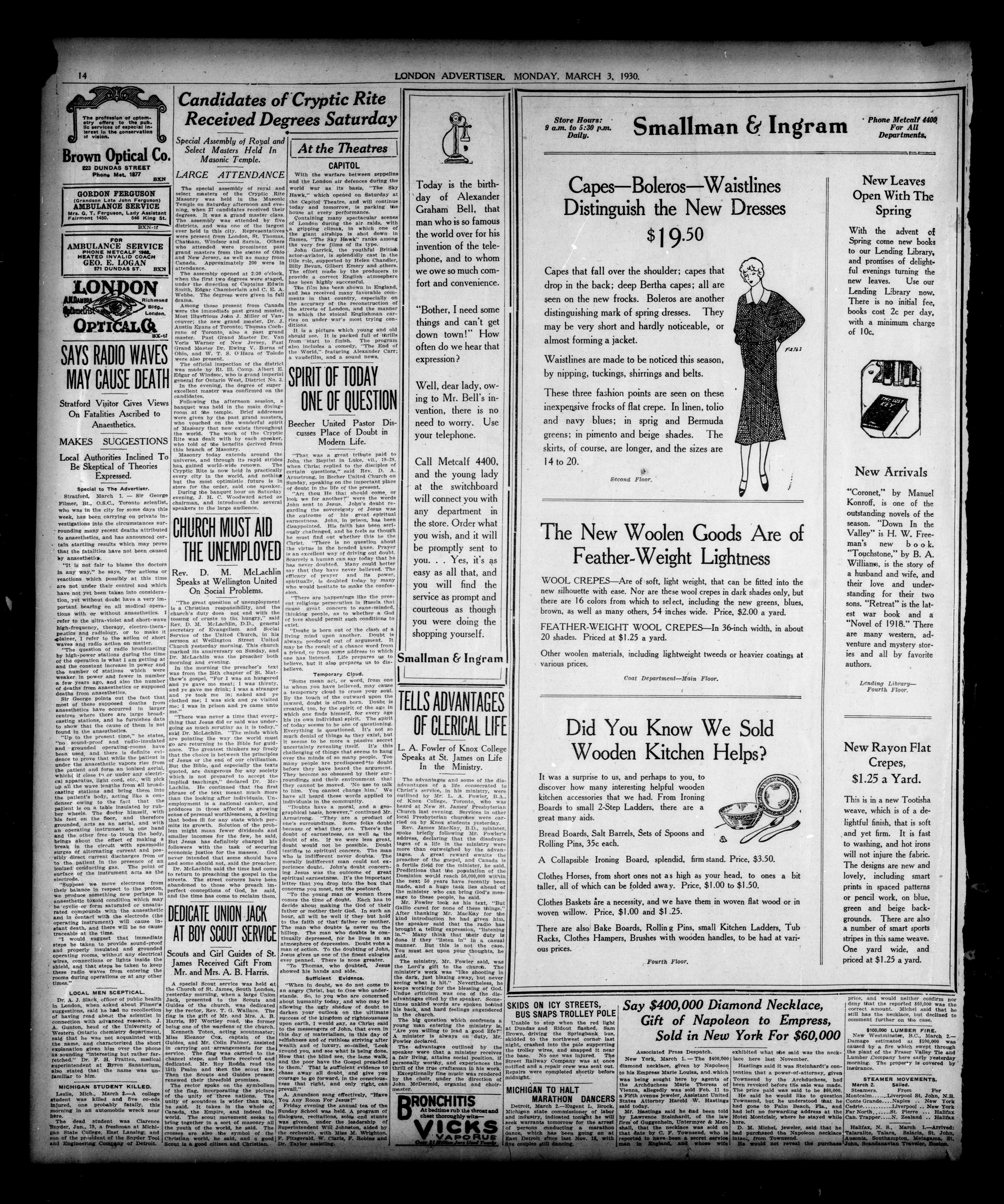London, Ontario : London Advertiser Company, Limited, [1930]; 14 images, 0 avec recherche en texte intégral