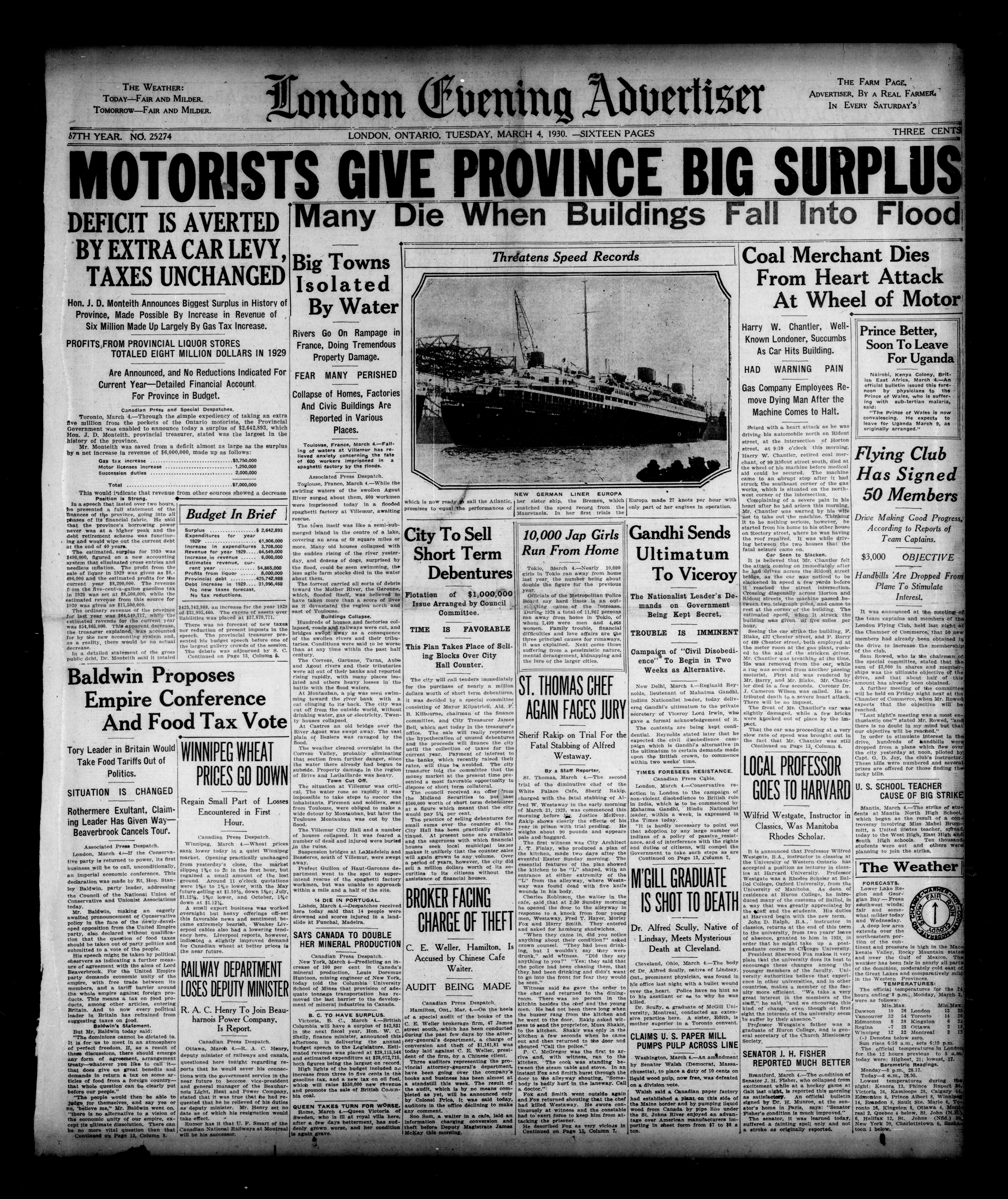 London, Ontario : London Advertiser Company, Limited, [1930]; 16 images, 0 avec recherche en texte intégral
