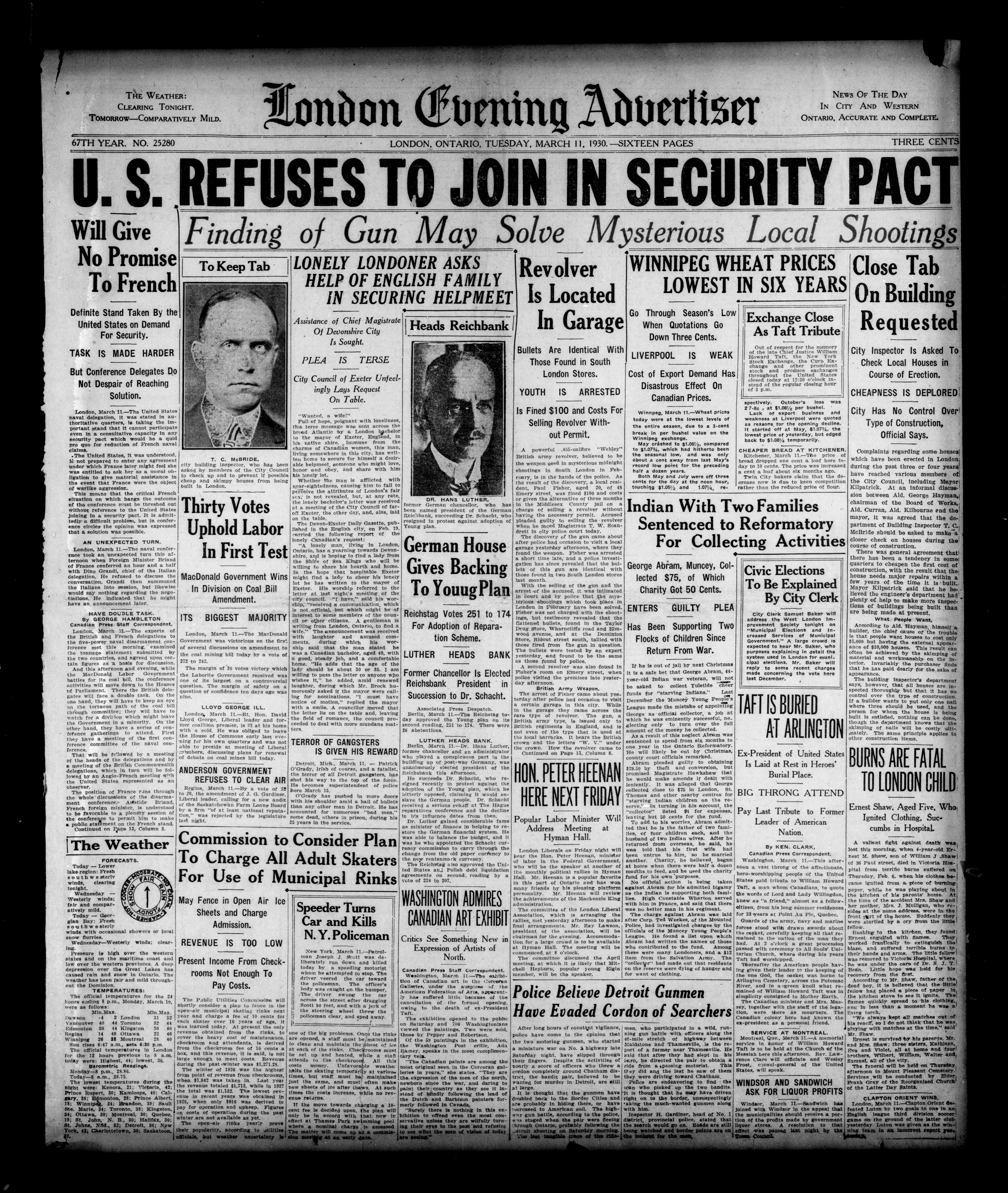 London, Ontario : London Advertiser Company, Limited, [1930]; 16 images, 0 avec recherche en texte intégral