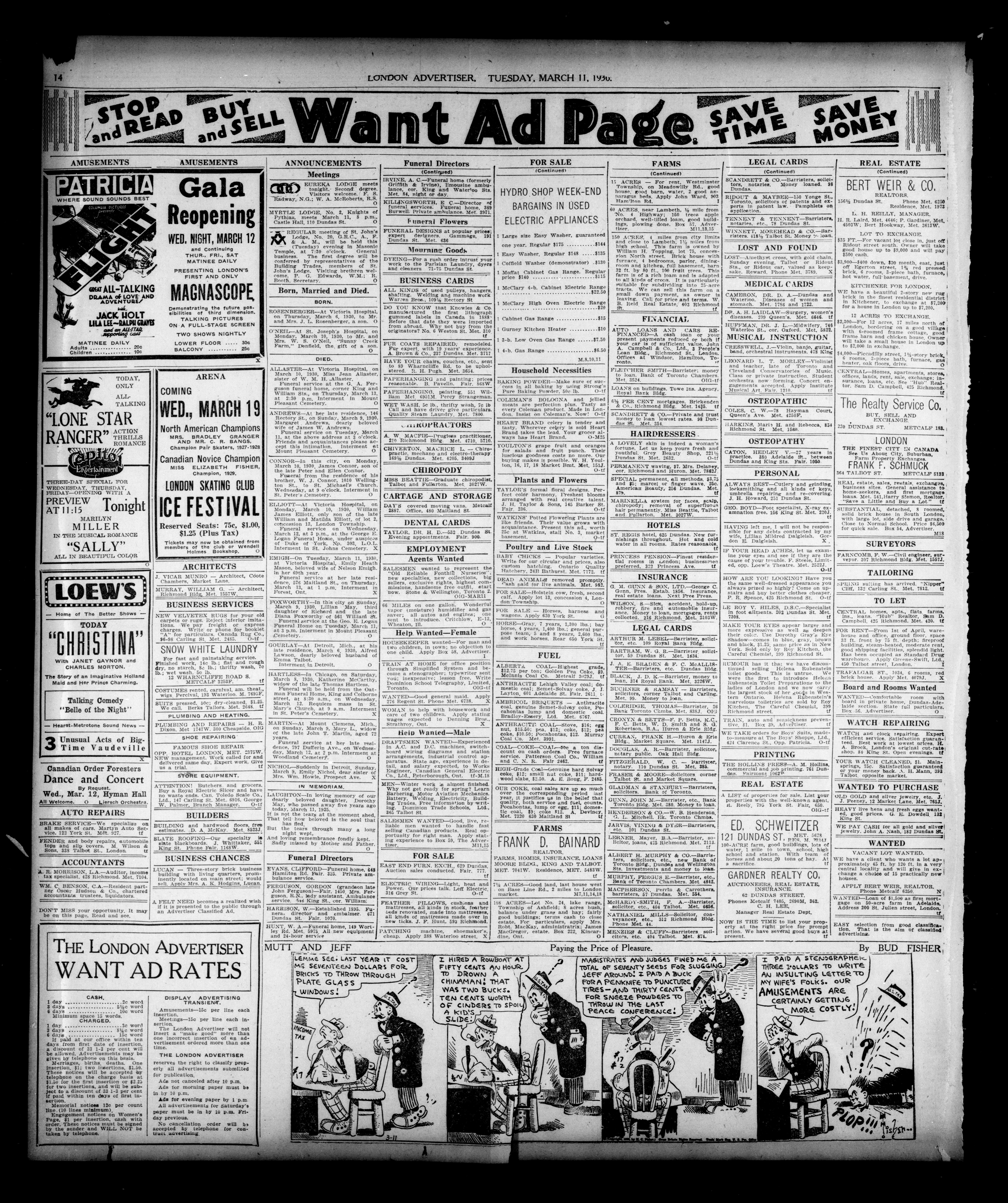 London, Ontario : London Advertiser Company, Limited, [1930]; 16 images, 0 avec recherche en texte intégral