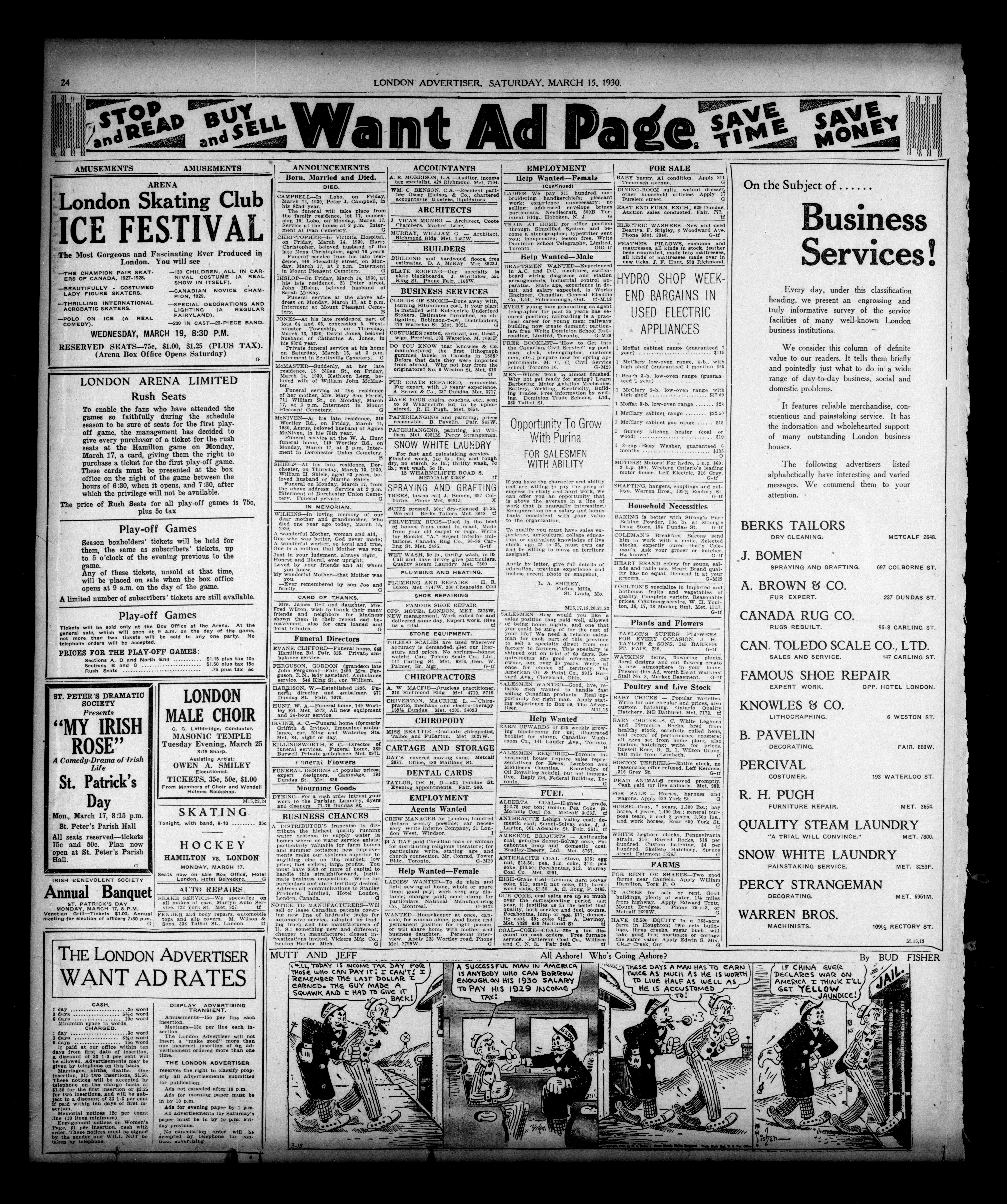 Aide London, Ontario : London Advertiser Company, Limited, [1930]; 26 images, 0 avec recherche en texte intégral