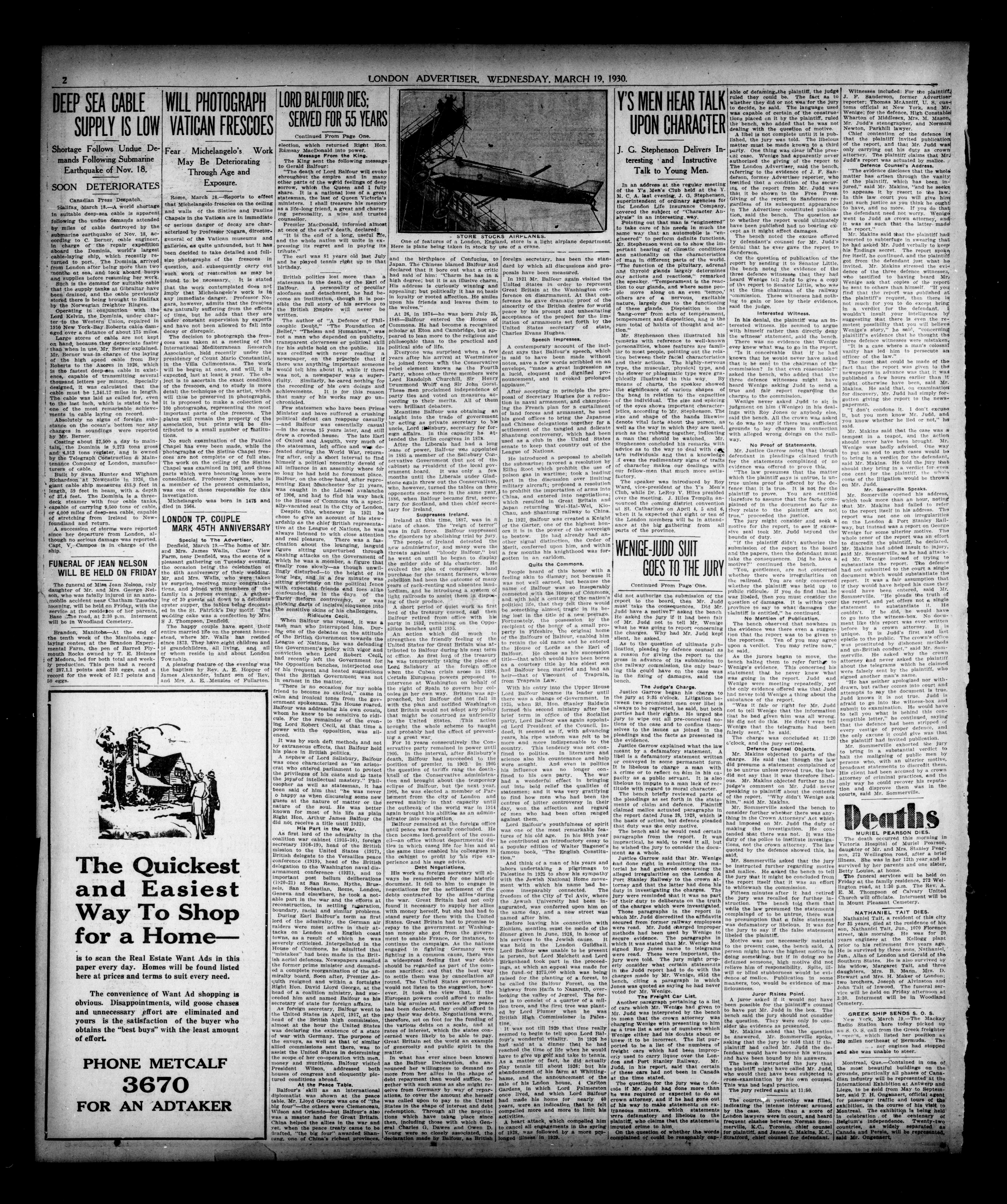 London evening advertiser : 67th Year, No. 25287 (March 19, 1930) - Adresse bibliographique