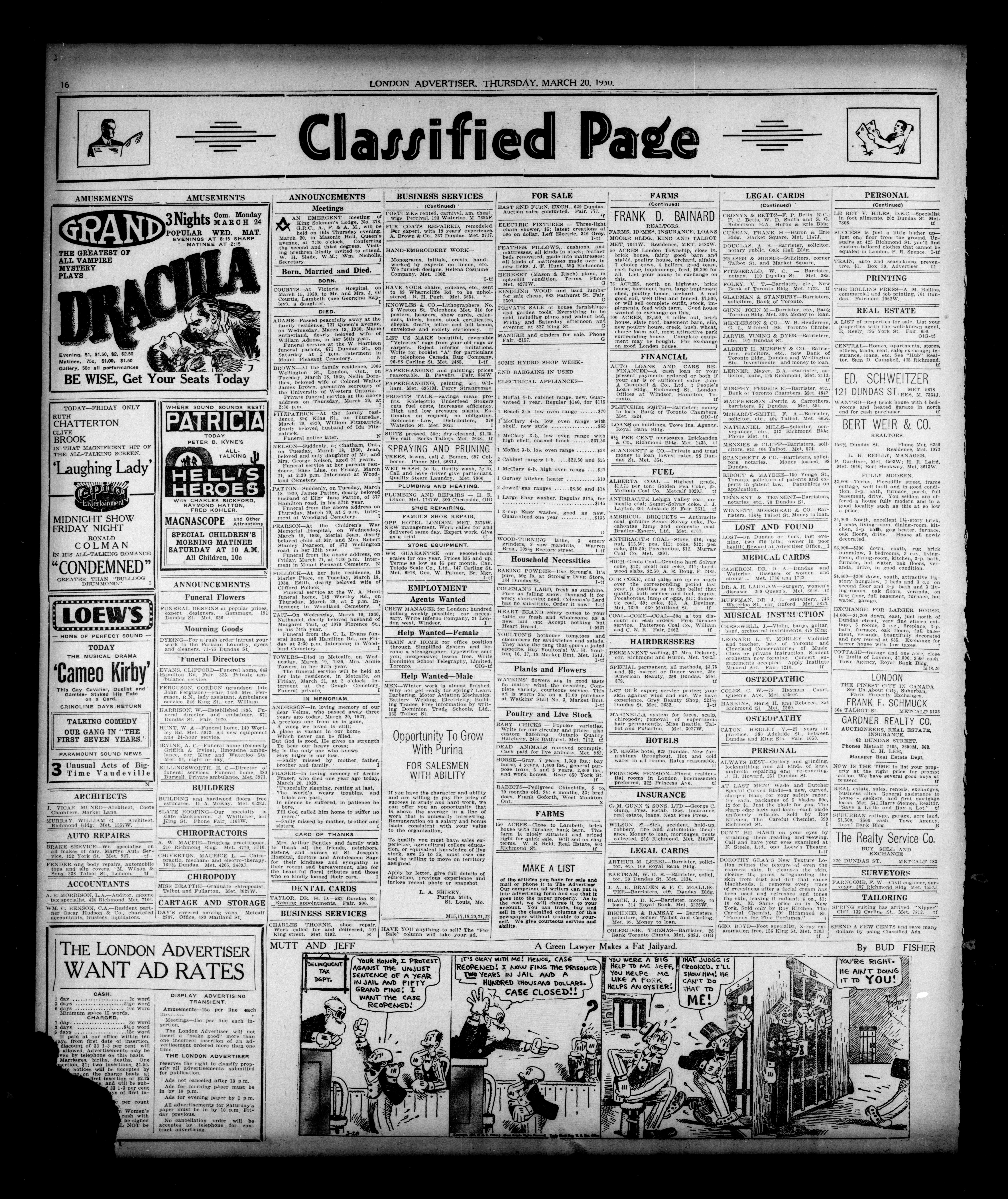 Aide London, Ontario : London Advertiser Company, Limited, [1930]; 16 images, 0 avec recherche en texte intégral