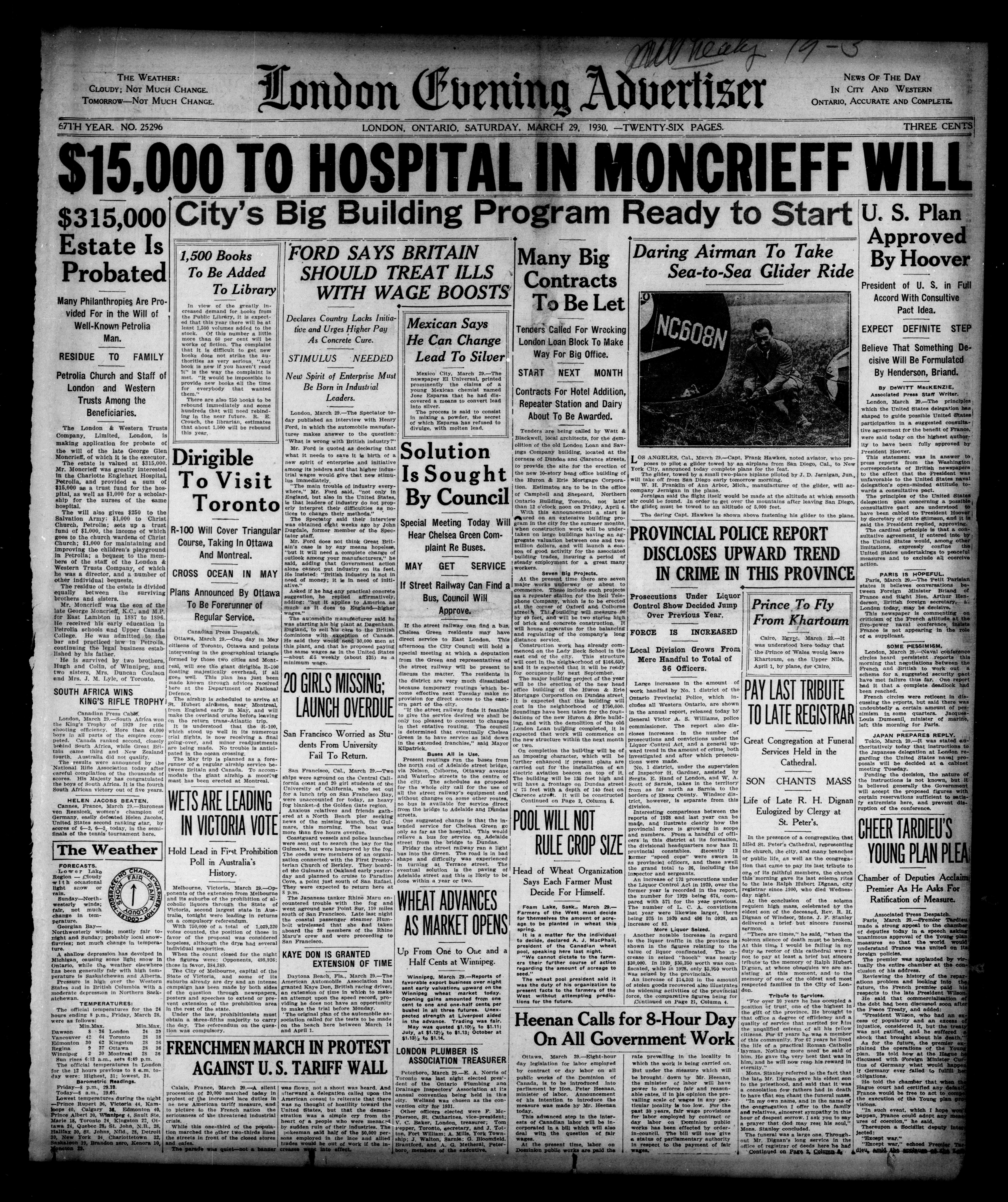 London, Ontario : London Advertiser Company, Limited, [1930]