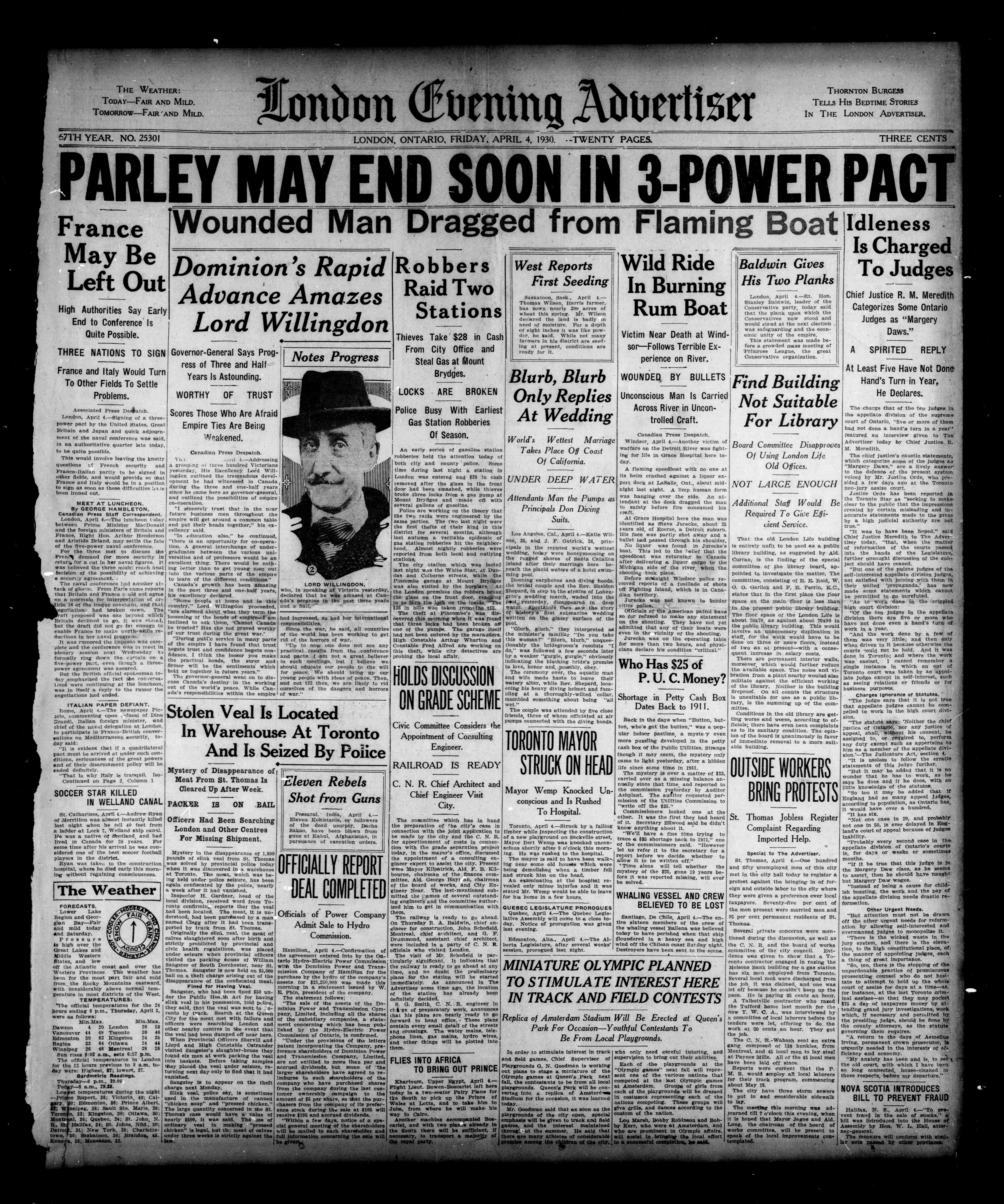 London, Ontario : London Advertiser Company, Limited, [1930]; 20 images, 0 avec recherche en texte intégral