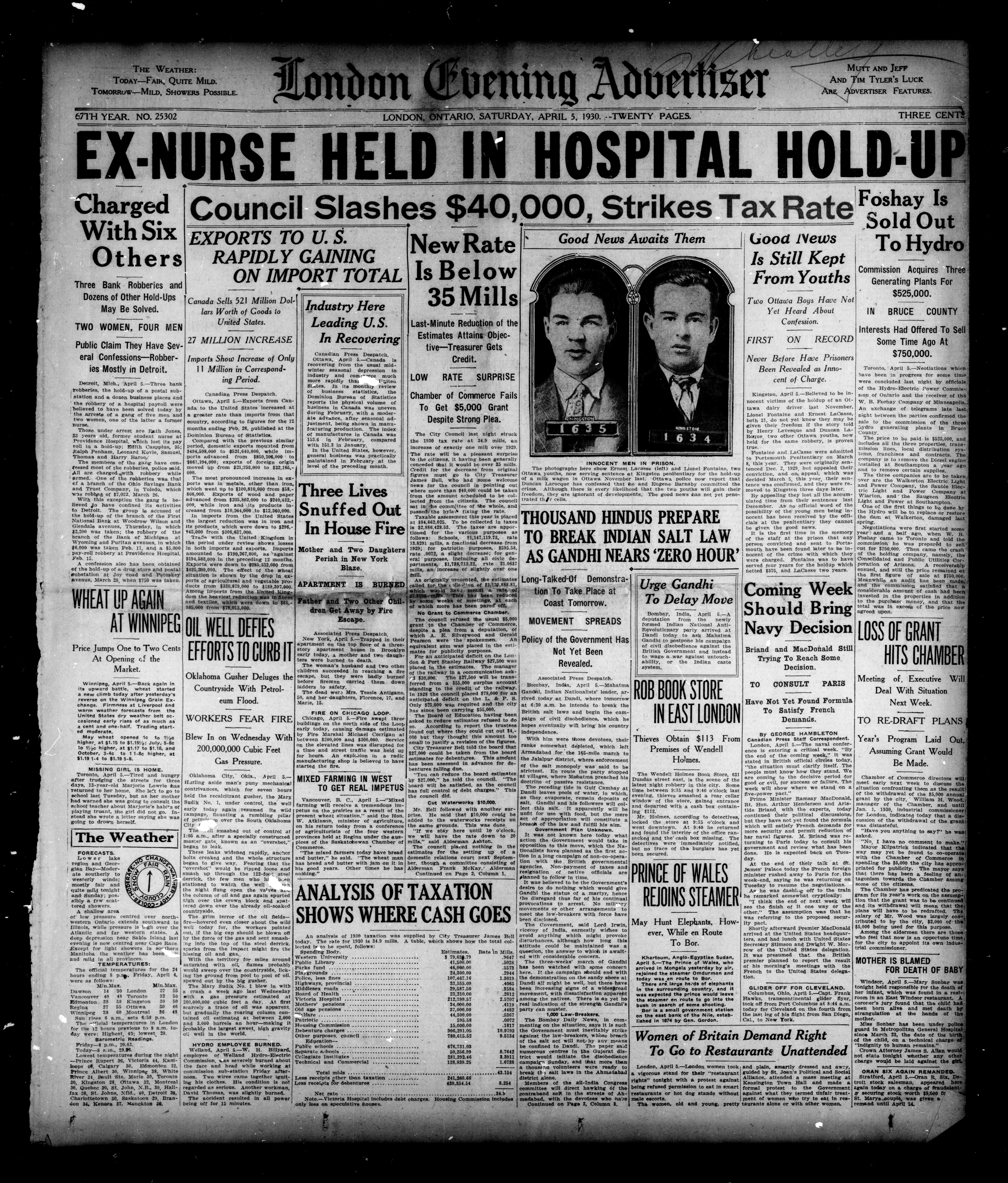 London, Ontario : London Advertiser Company, Limited, [1930]; 20 images, 0 avec recherche en texte intégral