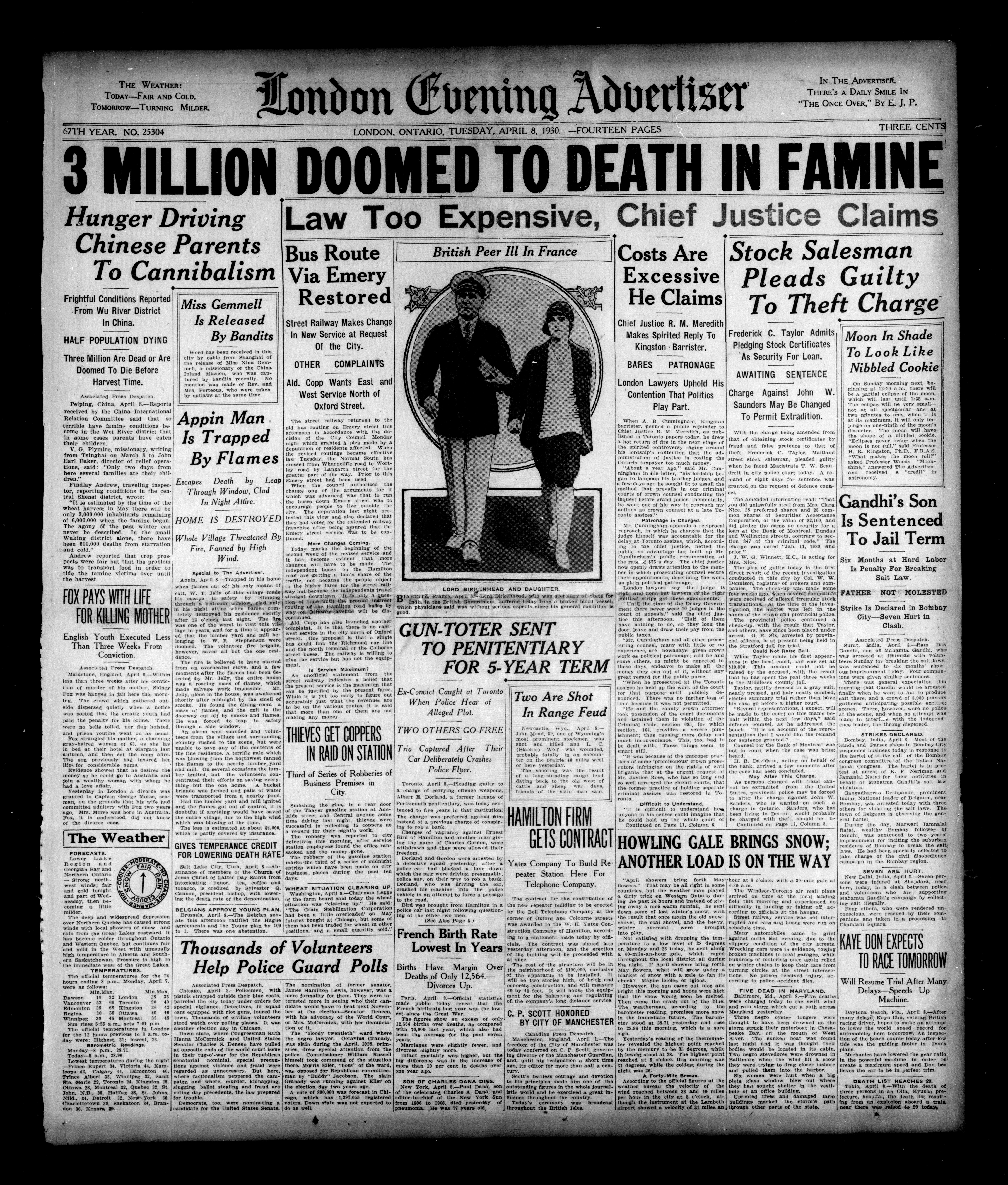 London Evening Advertiser. : London evening advertiser : 67th Year, No. 25304 (April 8, 1930)