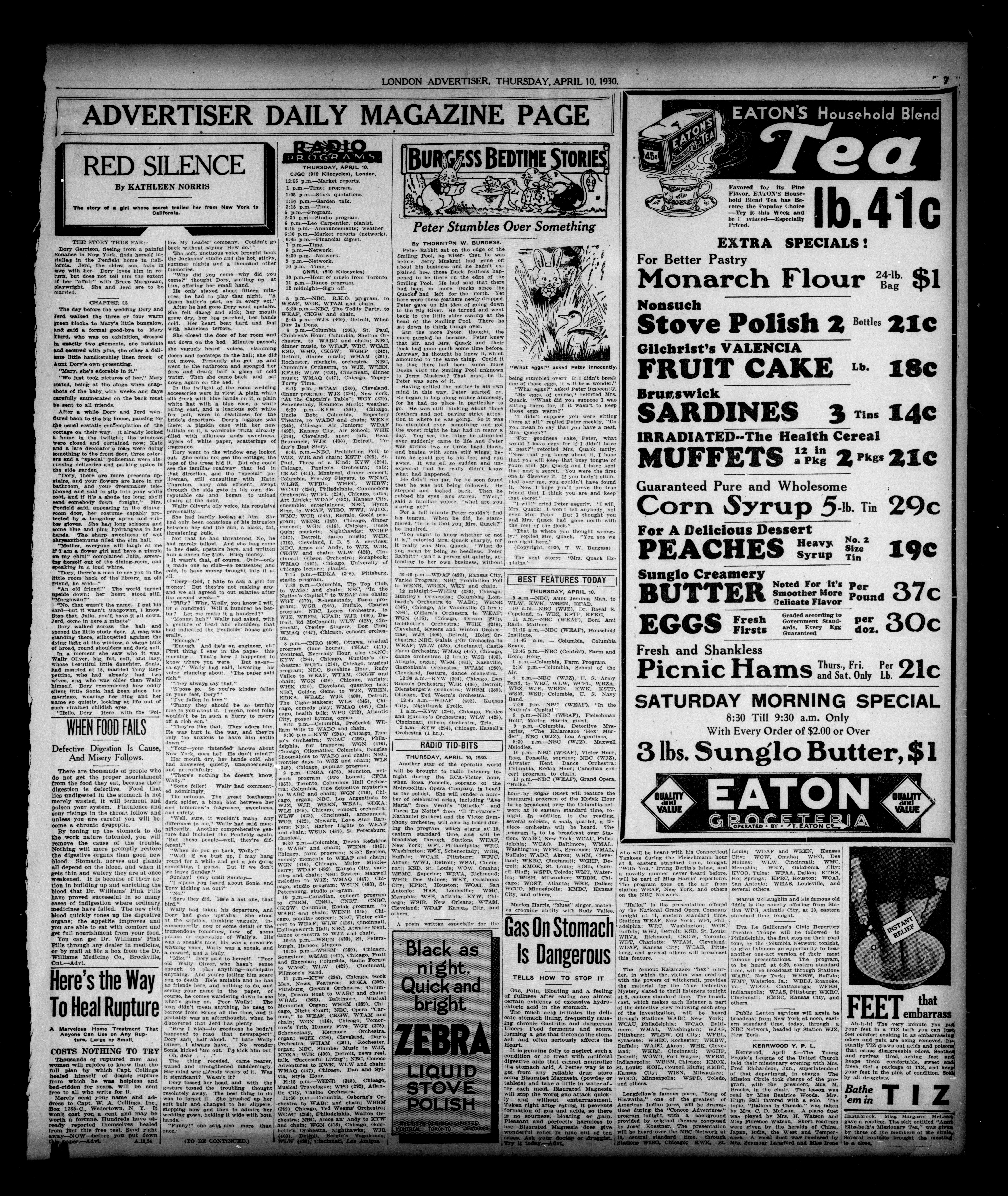 London, Ontario : London Advertiser Company, Limited, [1930]; 16 images, 0 avec recherche en texte intégral