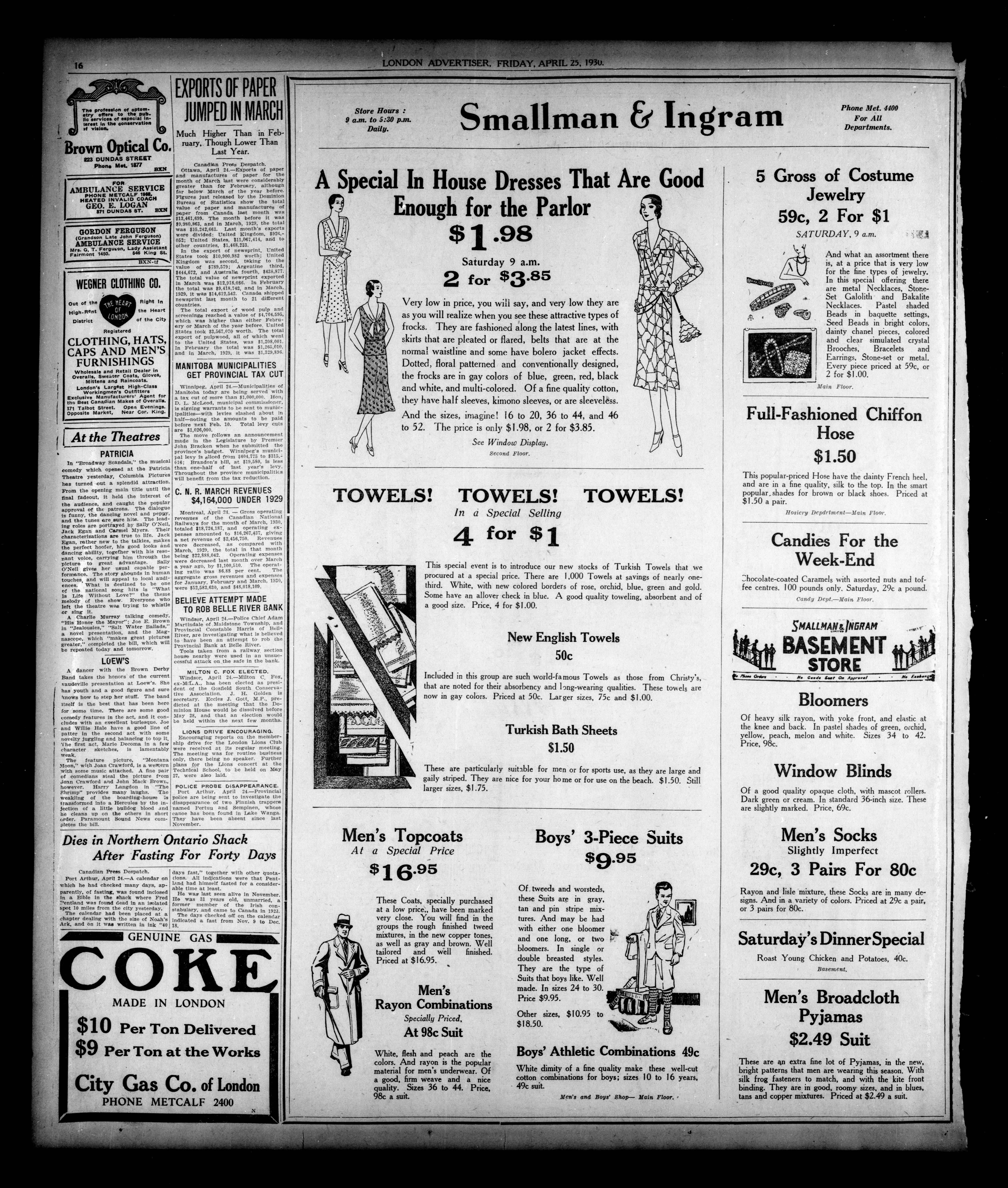 London, Ontario : London Advertiser Company, Limited, [1930]; 16 images, 0 avec recherche en texte intégral