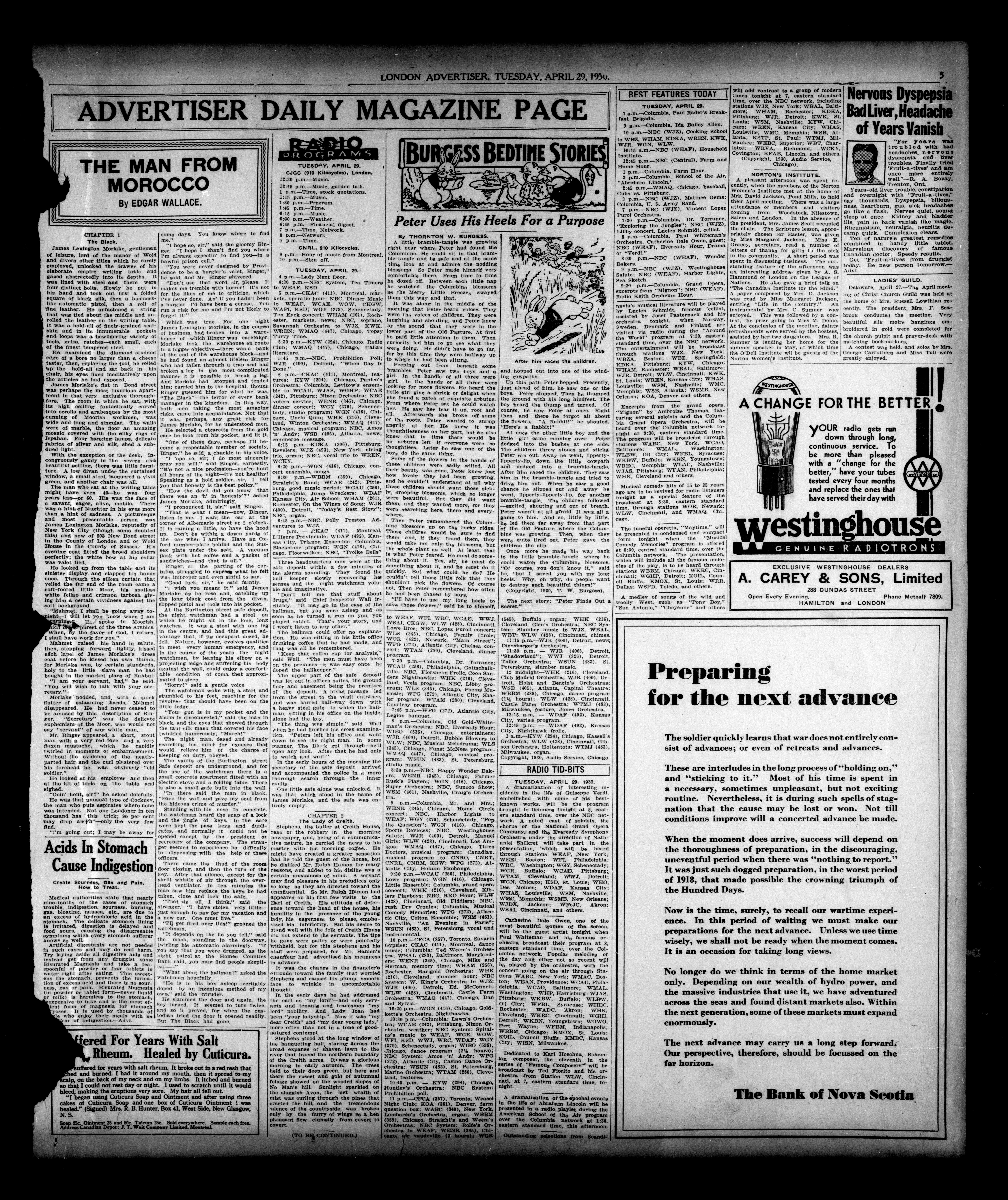 London, Ontario : London Advertiser Company, Limited, [1930]; 14 images, 0 avec recherche en texte intégral