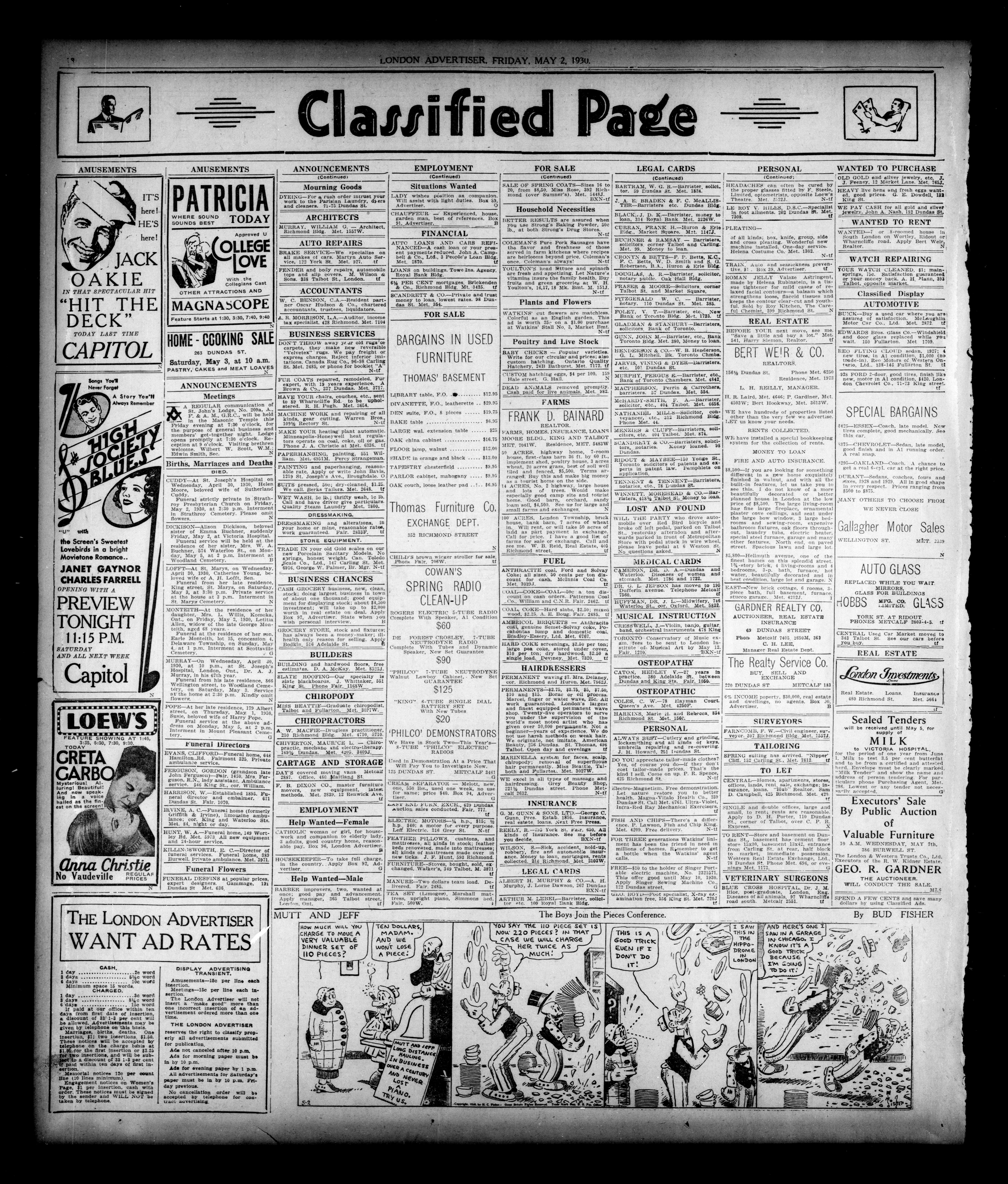 Aide London, Ontario : London Advertiser Company, Limited, [1930]; 20 images, 0 avec recherche en texte intégral