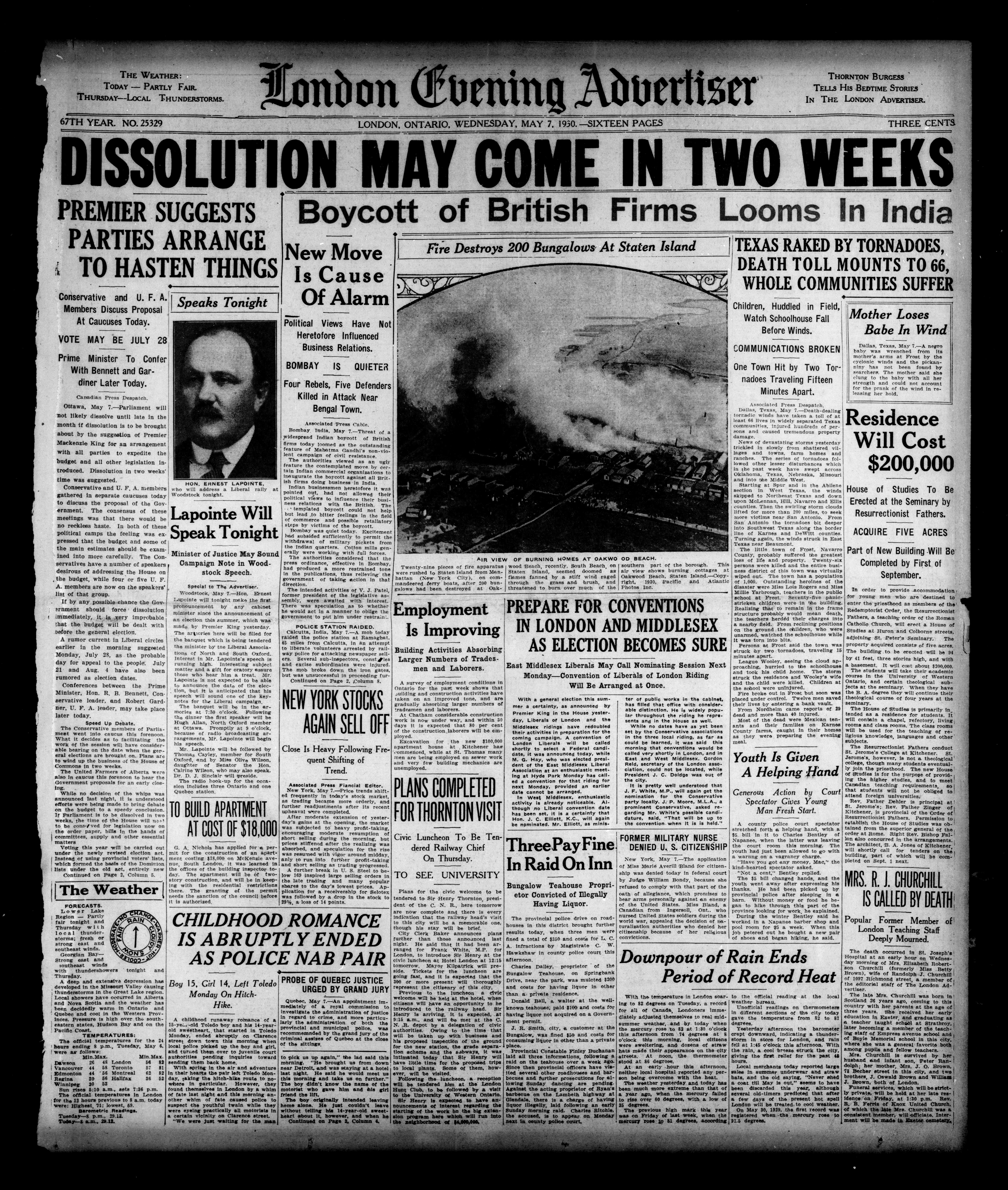 London evening advertiser : 67th Year, No. 25329 (May 7, 1930) - Adresse bibliographique
