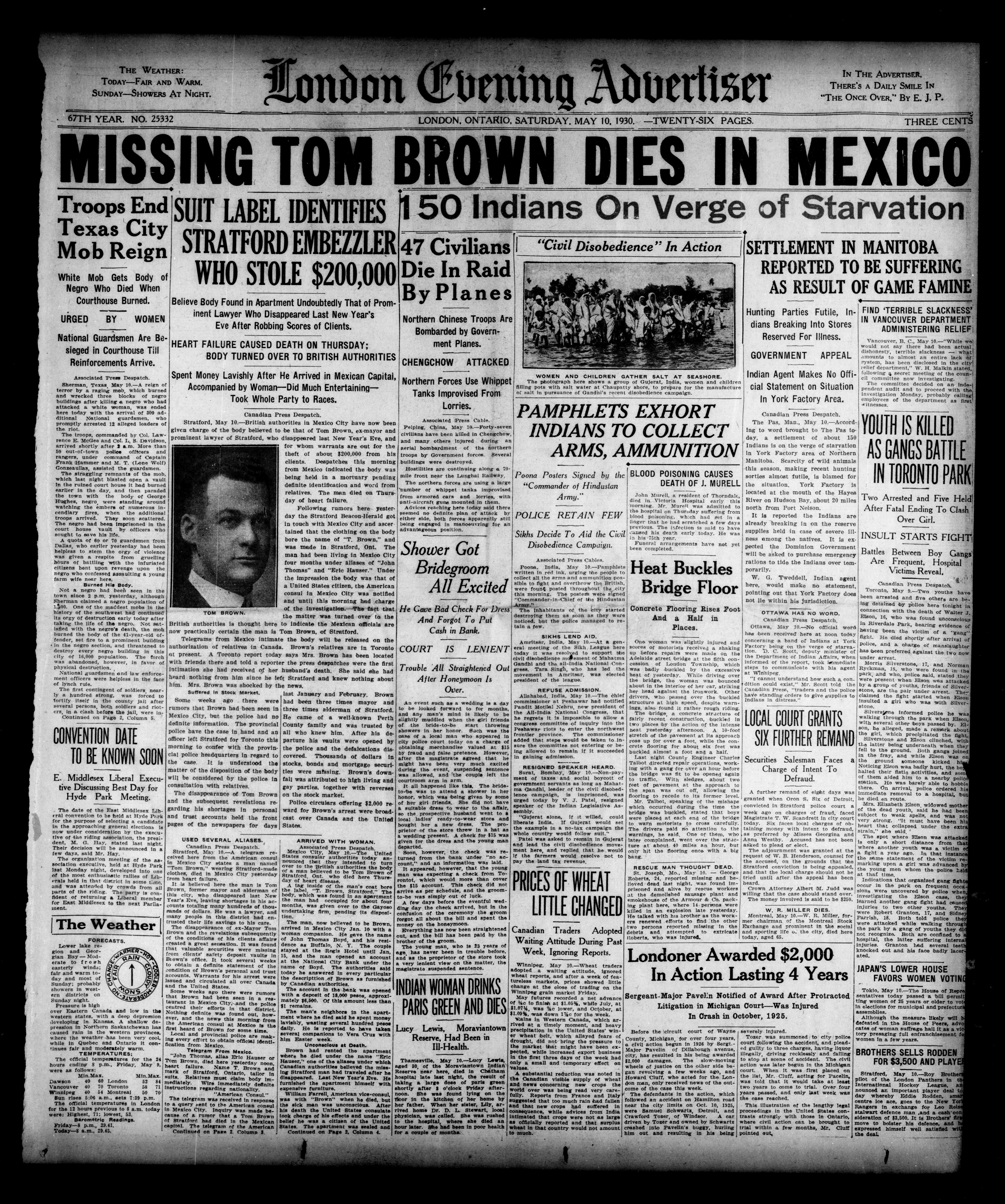 London evening advertiser : 67th Year, No. 25332 (May 10, 1930) - Adresse bibliographique