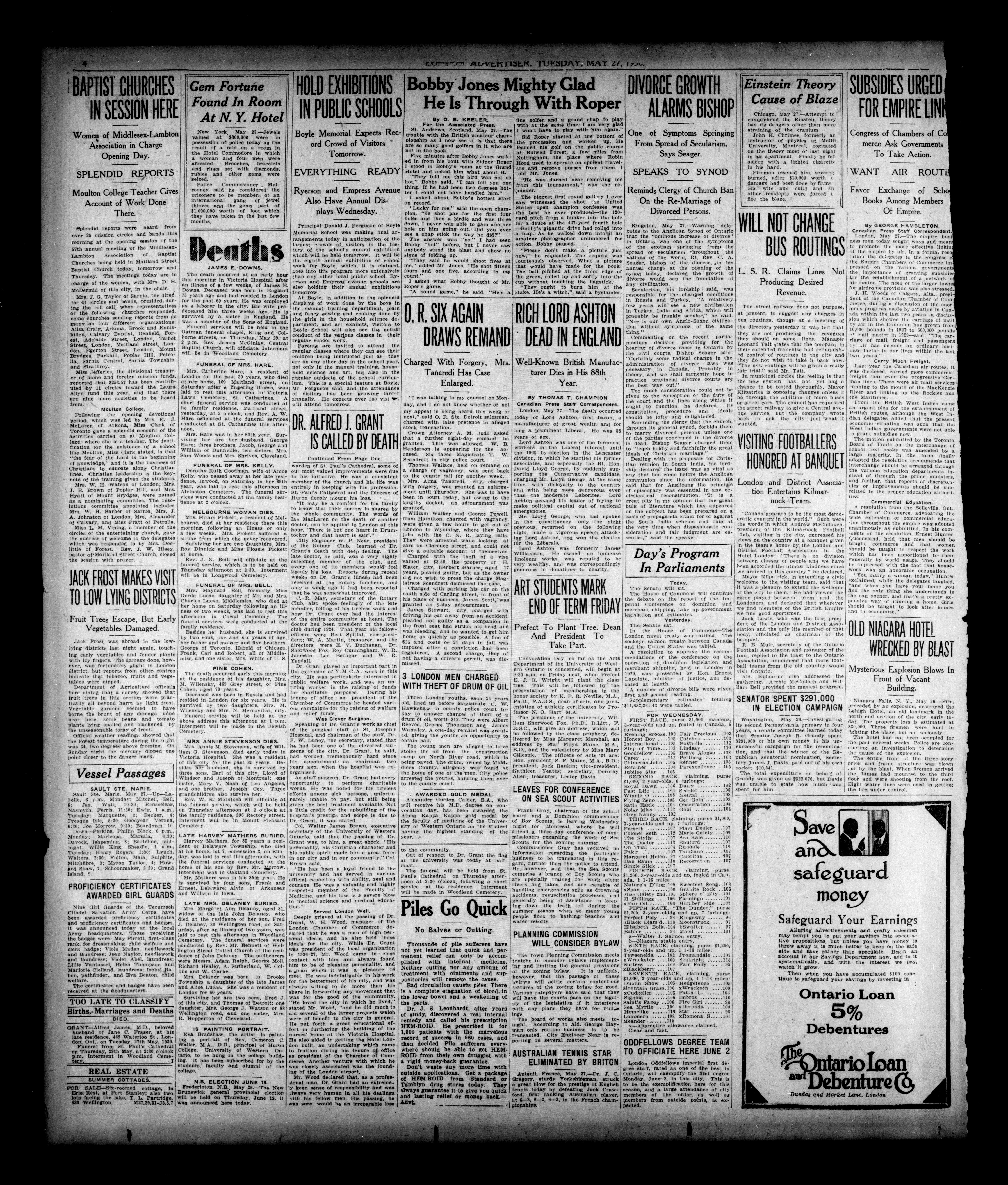 London evening advertiser : 67th Year, No. 25346 (May 27, 1930) - Published