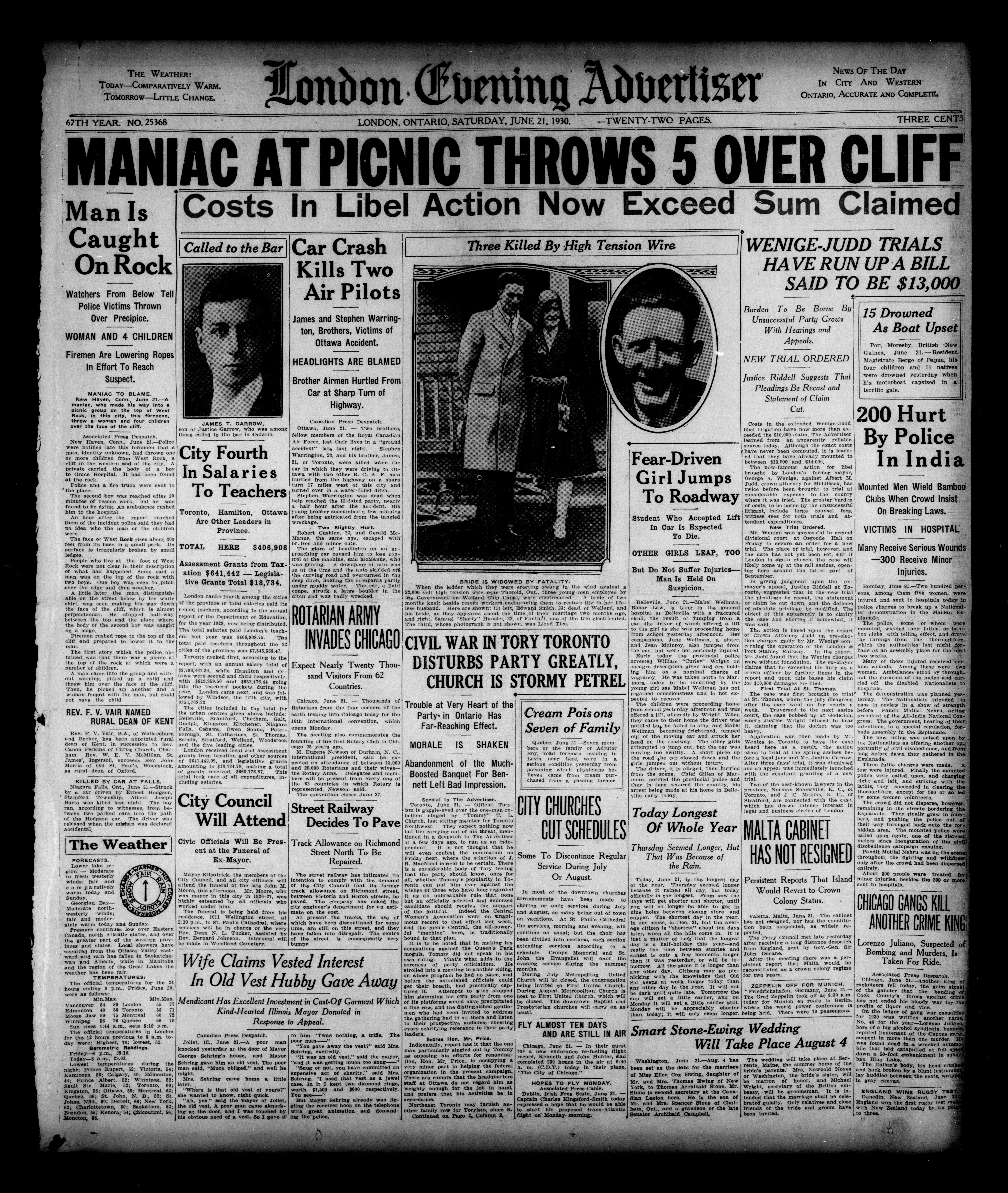 London, Ontario : London Advertiser Company, Limited, [1930]; 22 images, 0 avec recherche en texte intégral