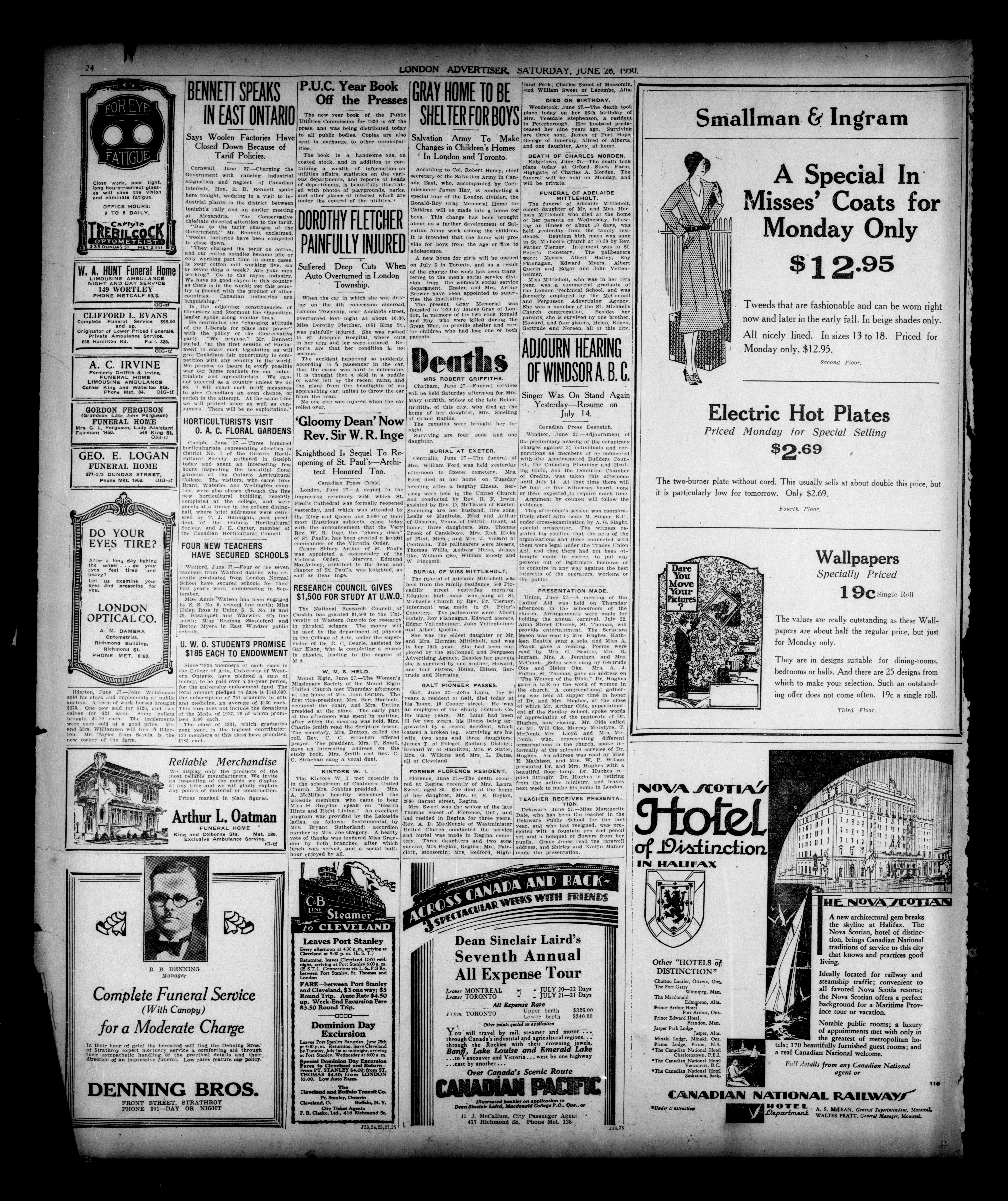 London, Ontario : London Advertiser Company, Limited, [1930]; 24 images, 0 avec recherche en texte intégral
