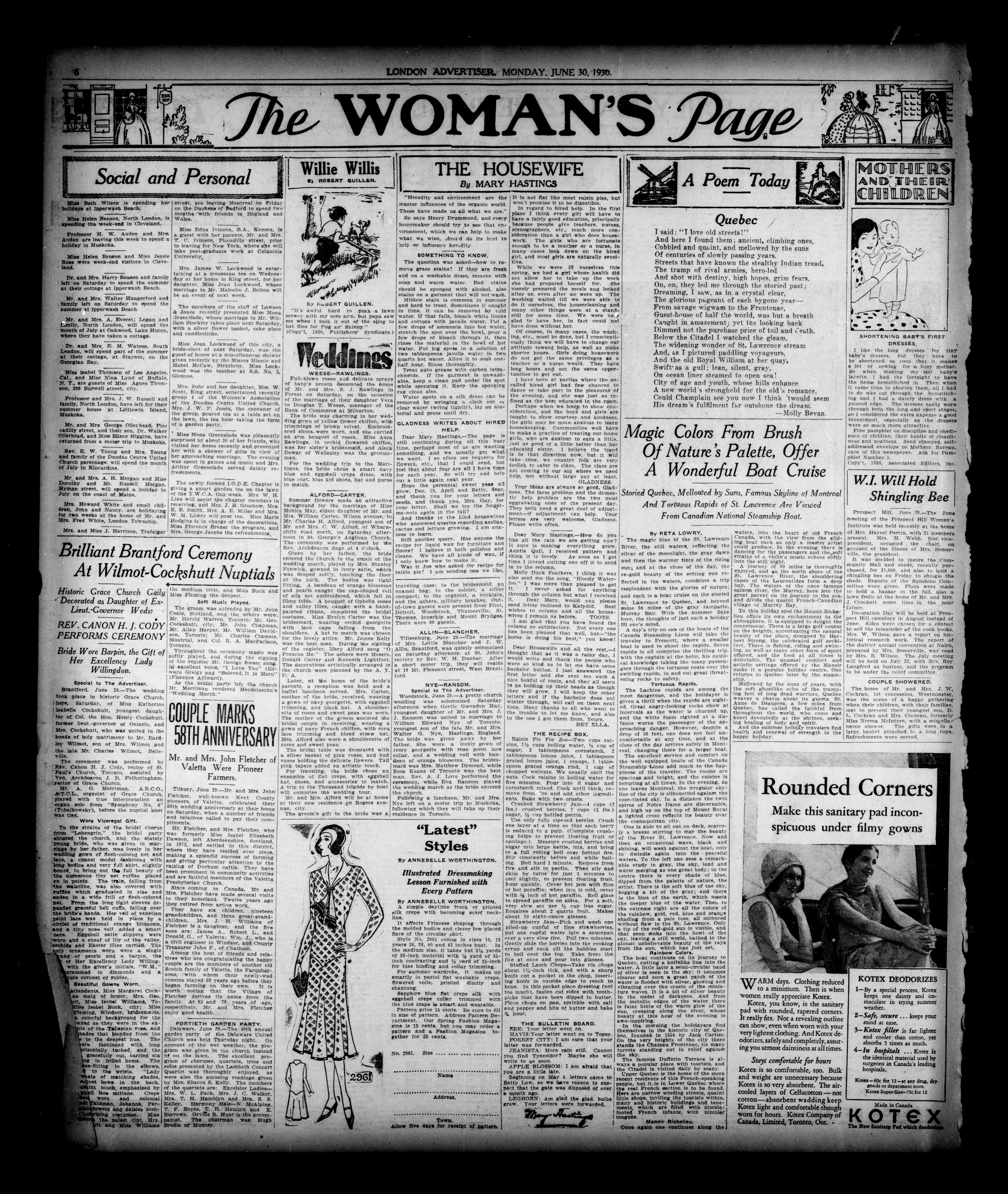 London, Ontario : London Advertiser Company, Limited, [1930]; 16 images, 0 avec recherche en texte intégral